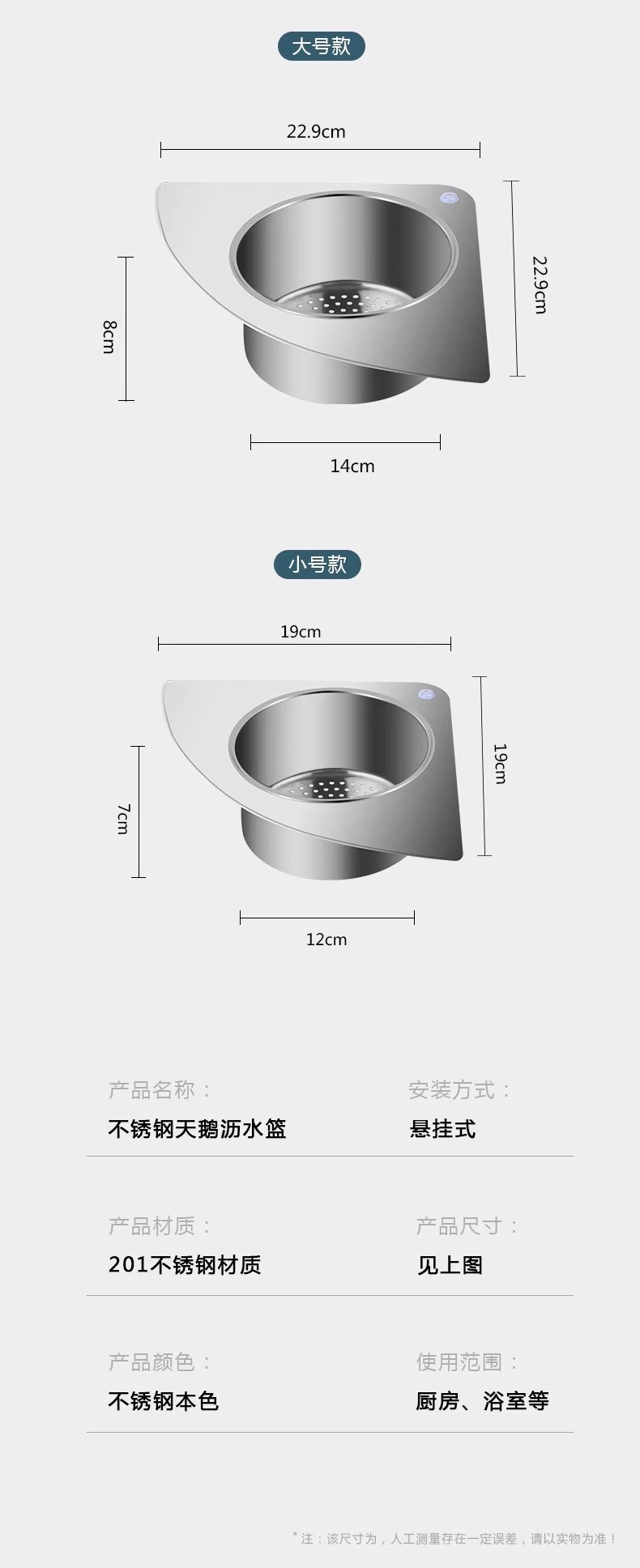 キッチンシンク専用白鳥排水バスケットステンレス鋼吊り下げ排水ラック乾湿分離フックゴミフィルターバスケット
