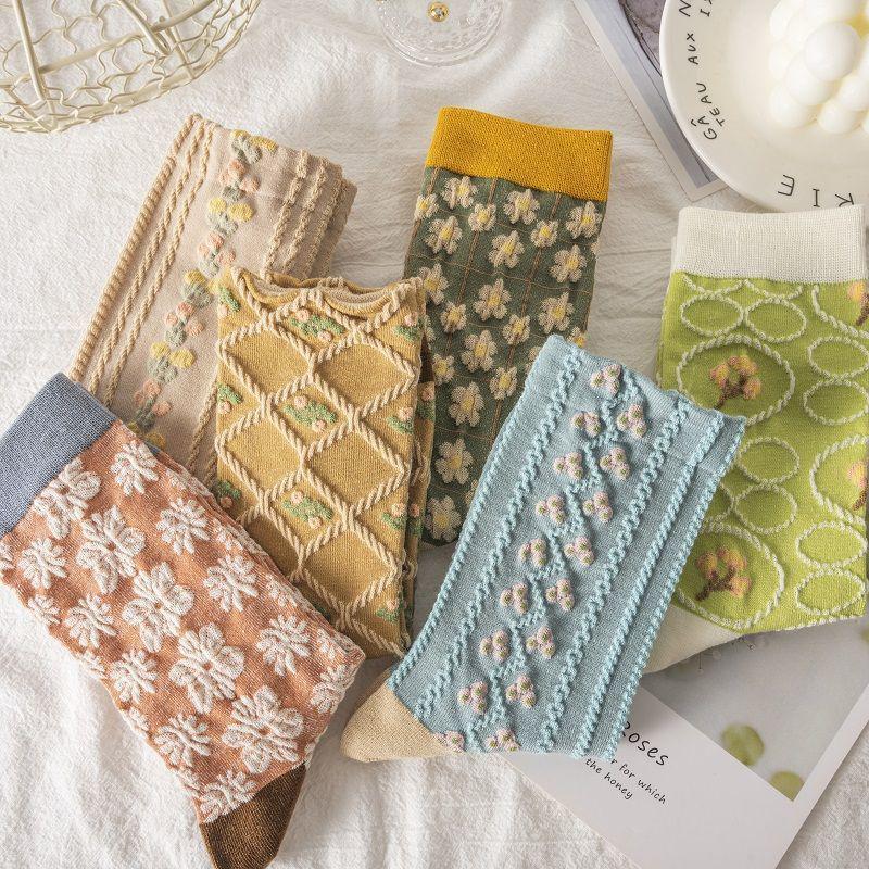 靴下の女性の中筒秋冬レトロなレリーフのストッキング