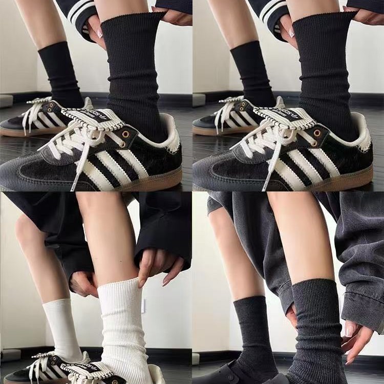 黑白深灰高级配色可拉直可堆堆春夏秋冬四季可穿慵懒袜子女批发