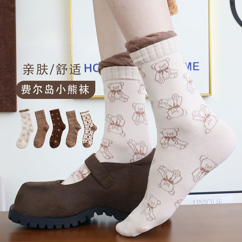 小熊袜子女中筒袜春秋夏季款日系可爱韩版潮卡通百搭休闲批发袜子