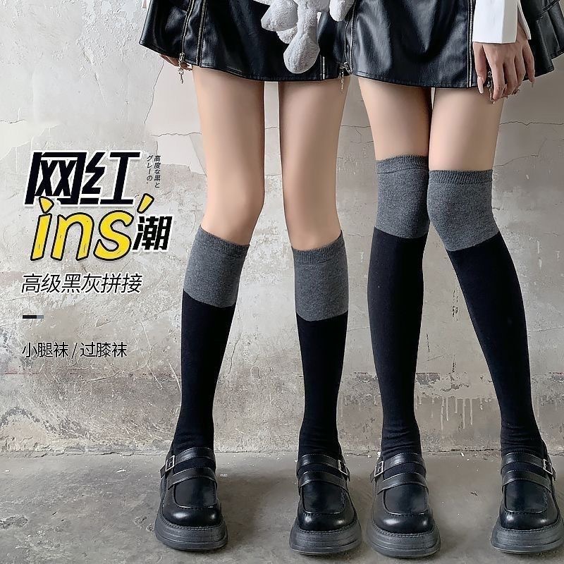 春秋季常规款小腿袜过膝袜显瘦纯色黑灰拼色长筒袜jk女神袜子批发