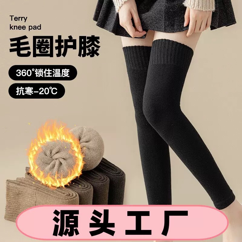 秋冬款保暖毛圈过膝袜护膝盖长袜加绒加厚女高筒护腿袜套长筒批发