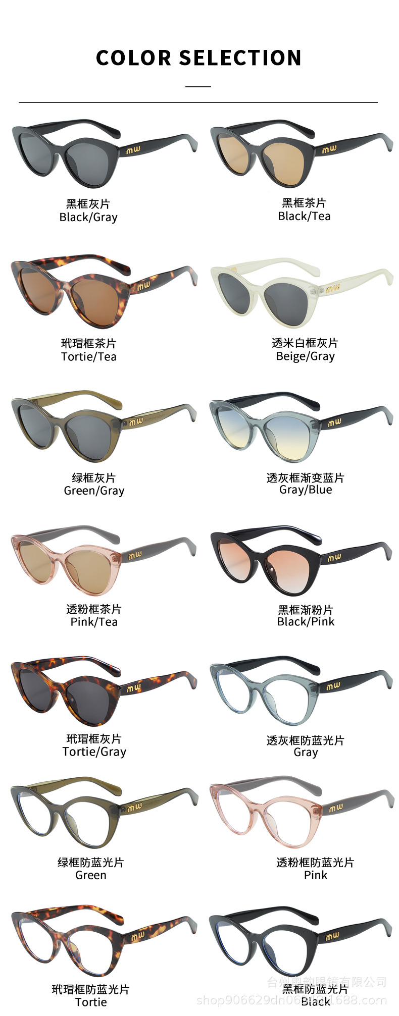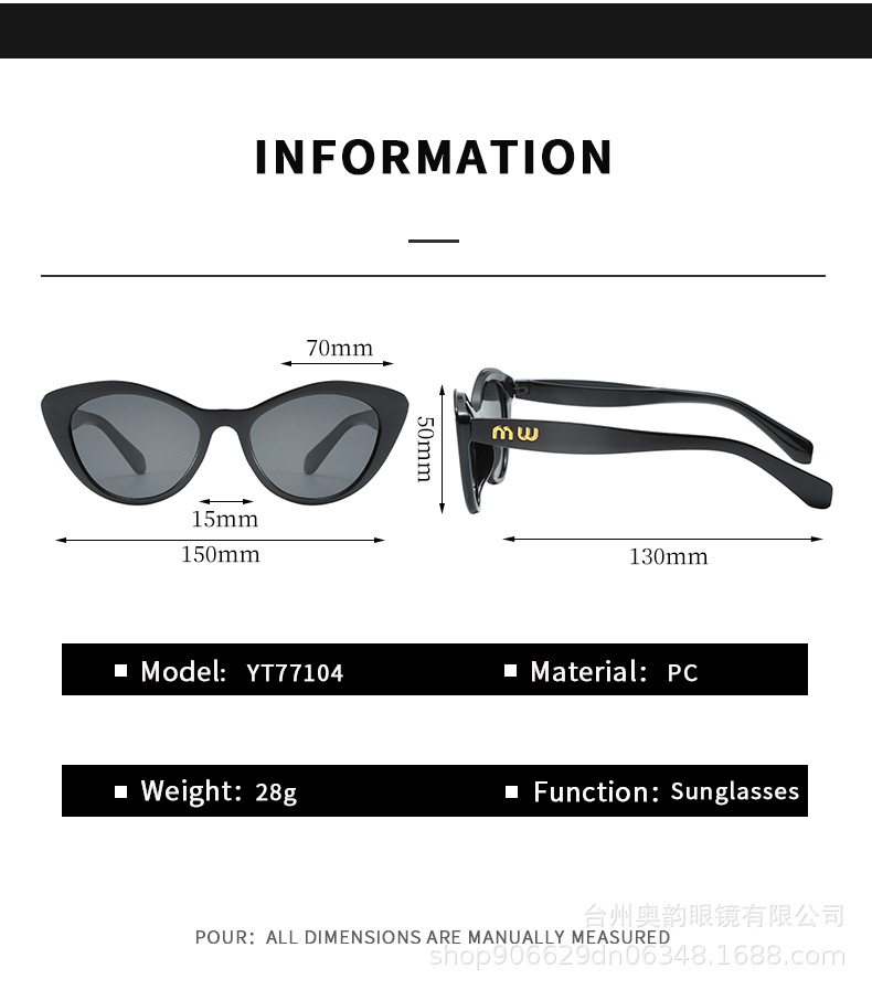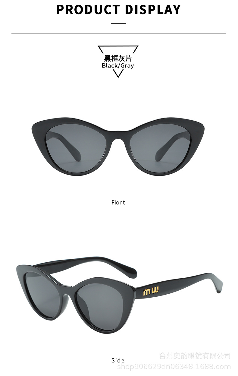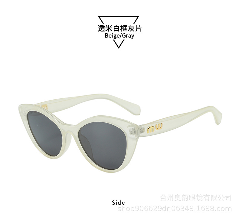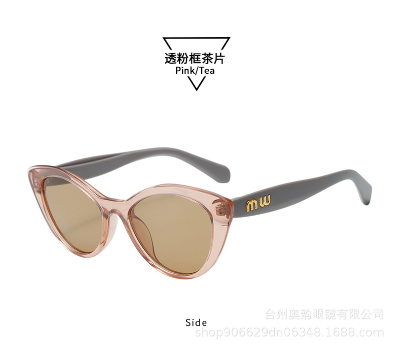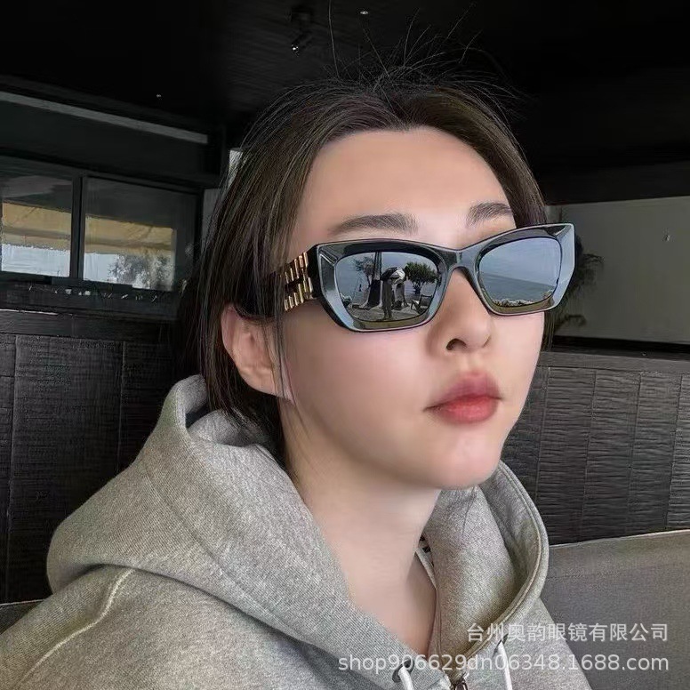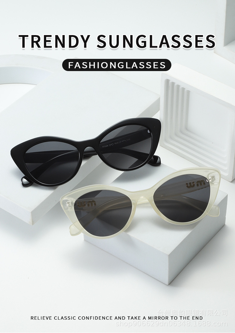 新款跨境猫眼窄框时尚太阳镜复古百搭防紫外线出街凹造型墨镜批发