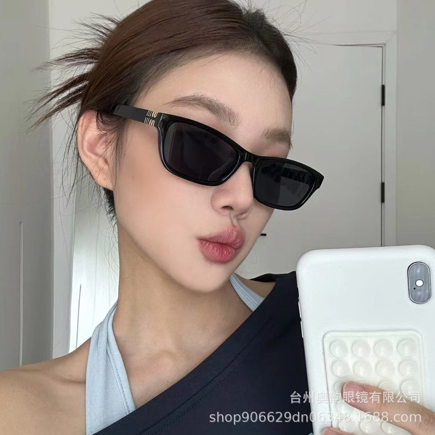 韓国版のレトロな無地のスクエアフレームスリムサングラス、パーソナライズされたライスネイル、小紅書と同じスタイルの抗UVサングラス卸売