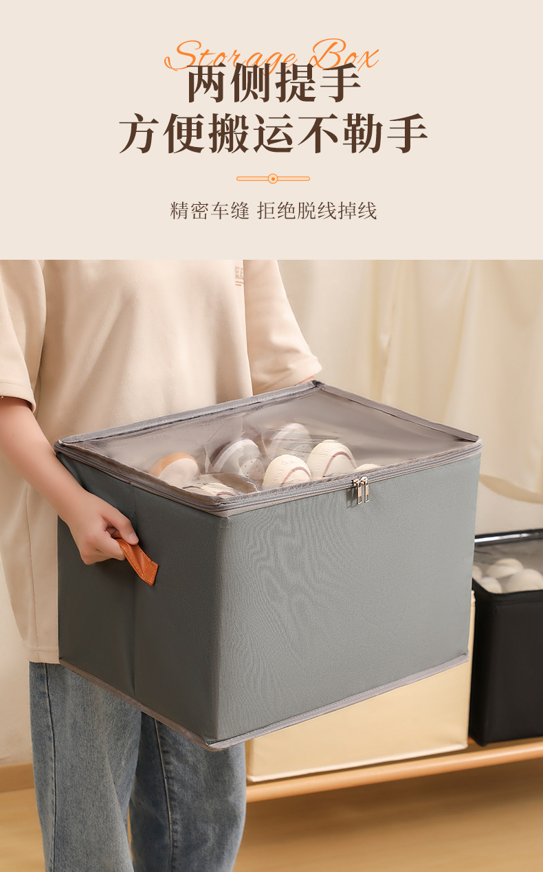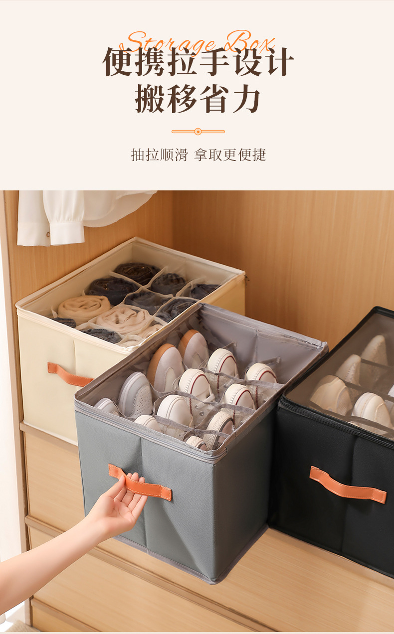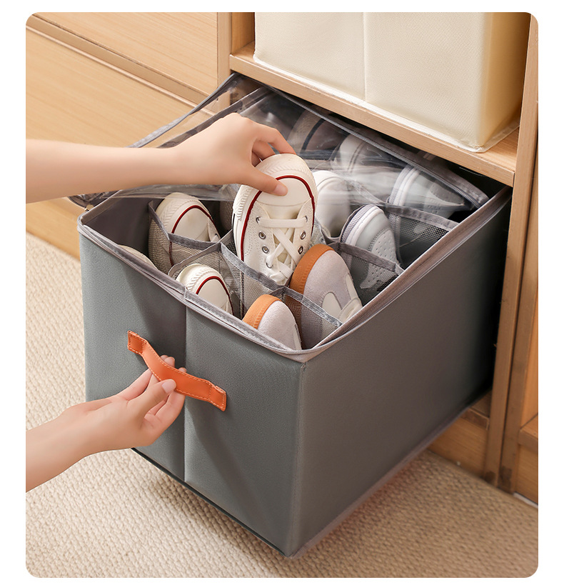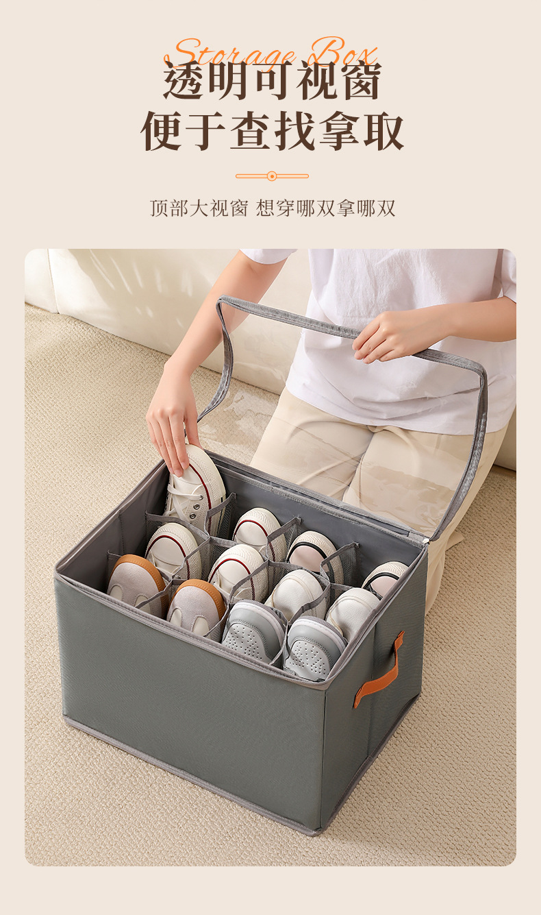 可折叠防潮带盖分格鞋盒布艺透明可视换季鞋子收纳盒水洗整理箱子