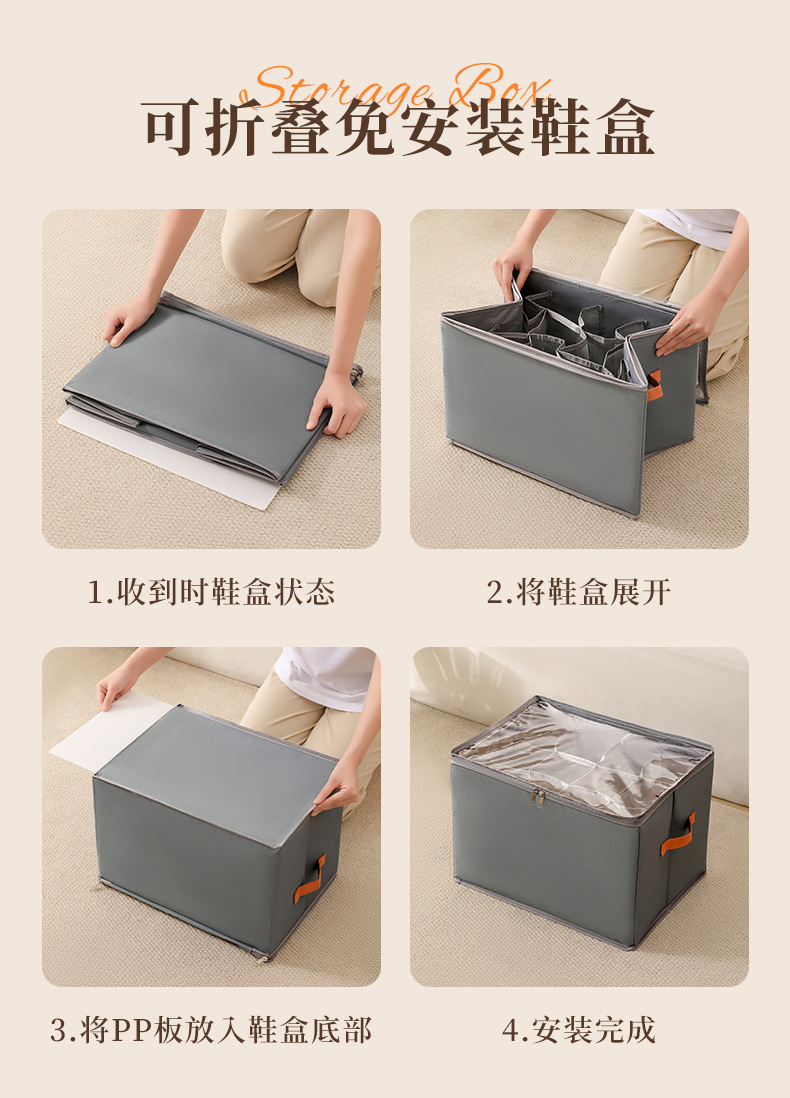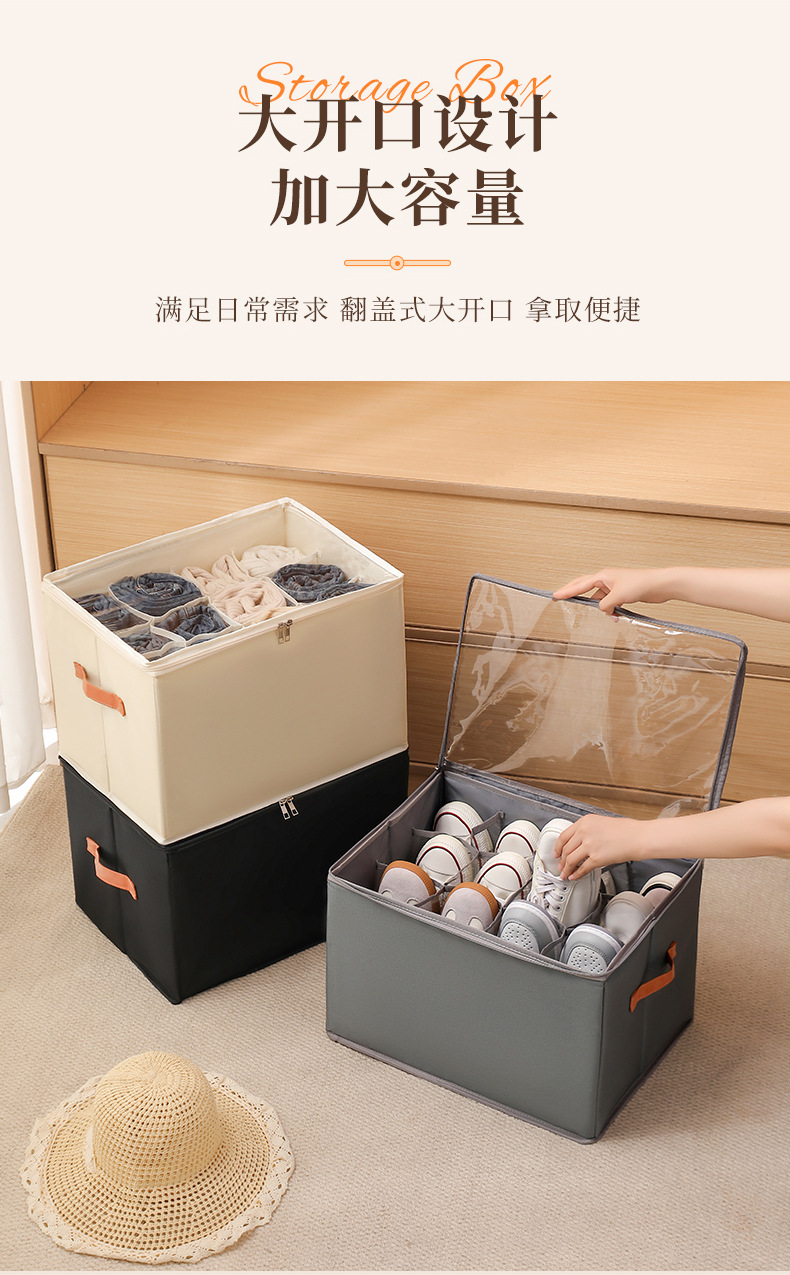 亚马逊跨境款收纳盒折叠带盖防尘鞋子收纳盒多功能分格杂物收纳箱