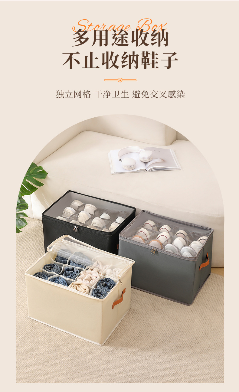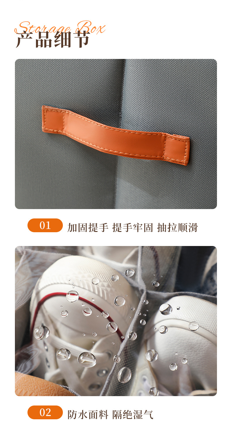 跨境热销收纳鞋盒牛津布可折叠带盖分格整理收纳盒防尘防潮可水洗