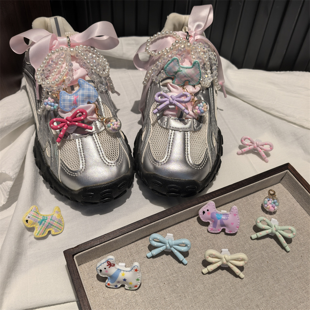 日本と韓国のクリスタルパールリボン靴花子犬漫画靴バックルドーパミン子供靴装飾バックルアクセサリー