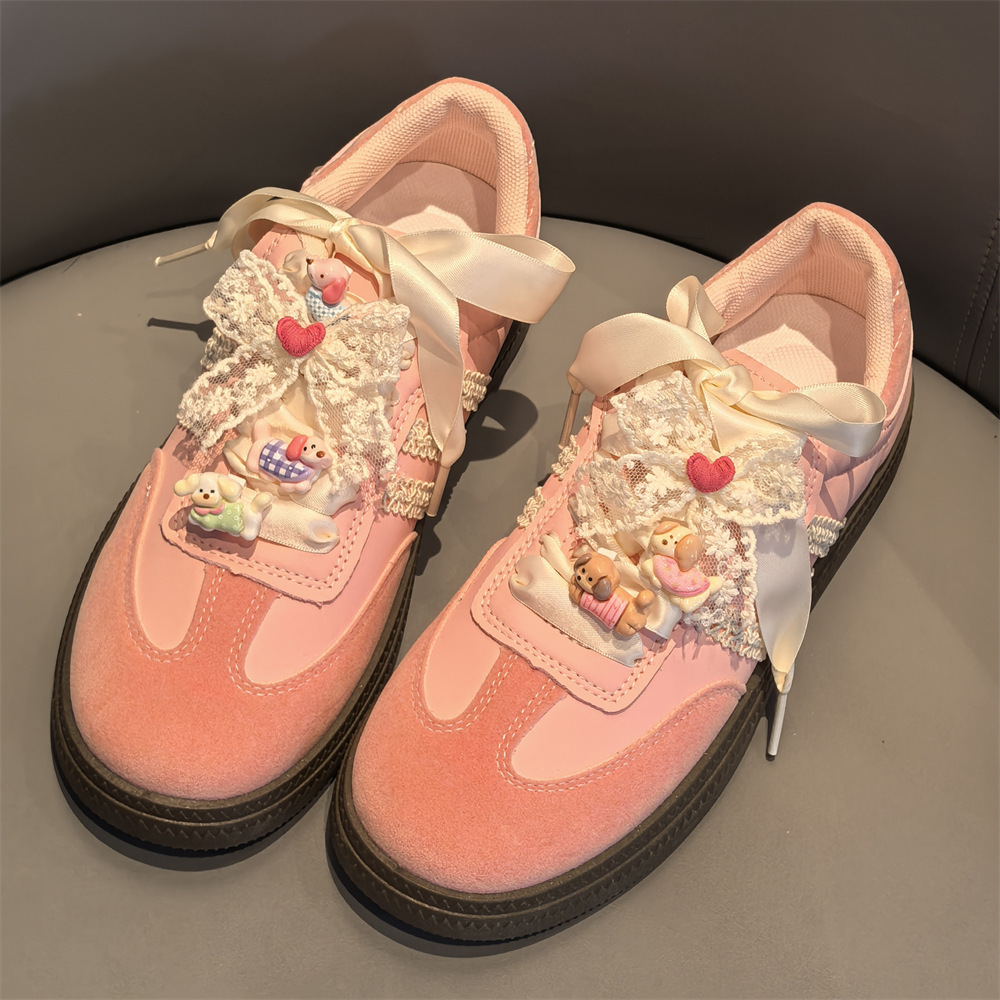 韓国の愛のレースの蝶結びの子犬の靴のバックルの徳訓の靴は漫画のソーセージの子犬の靴の花を飾ります。