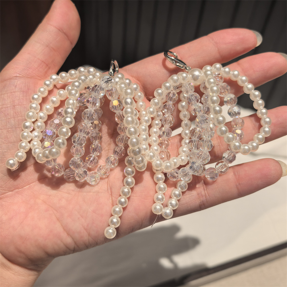 韓国版東大門バレエ靴高級感装飾真珠蝶結び靴花ストラップ銀灰ビーズ靴バックル靴ひも