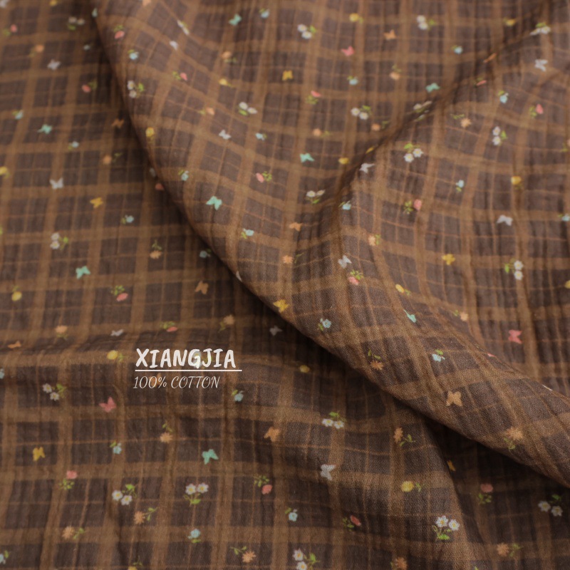现货 双层棉纱布 复古咖啡色碎花蝴蝶 绉布 睡衣 家居服面料