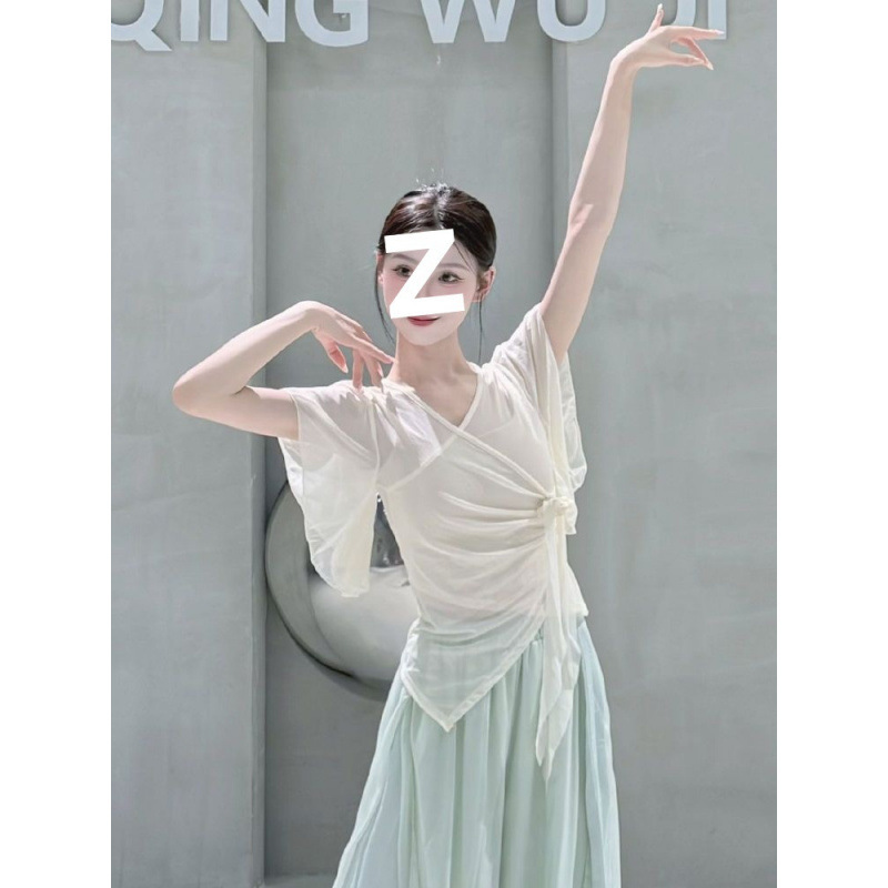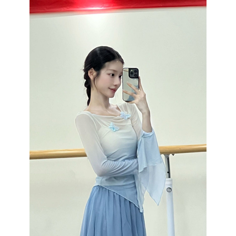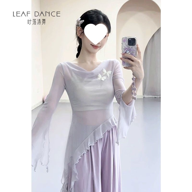 古典舞蹈服飘逸网纱荡领蝴蝶上衣中国舞现代舞形体练功服纱衣跨境