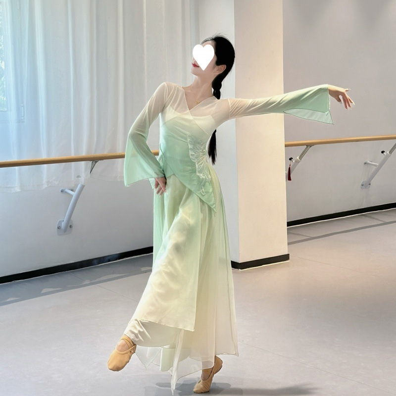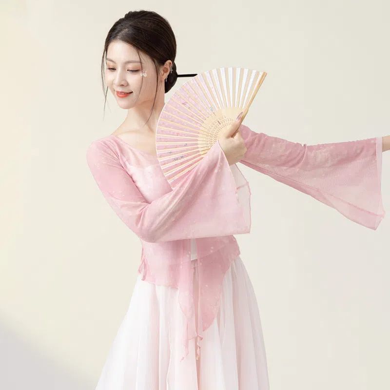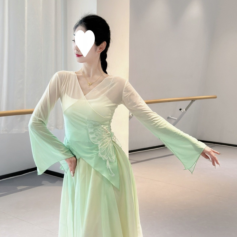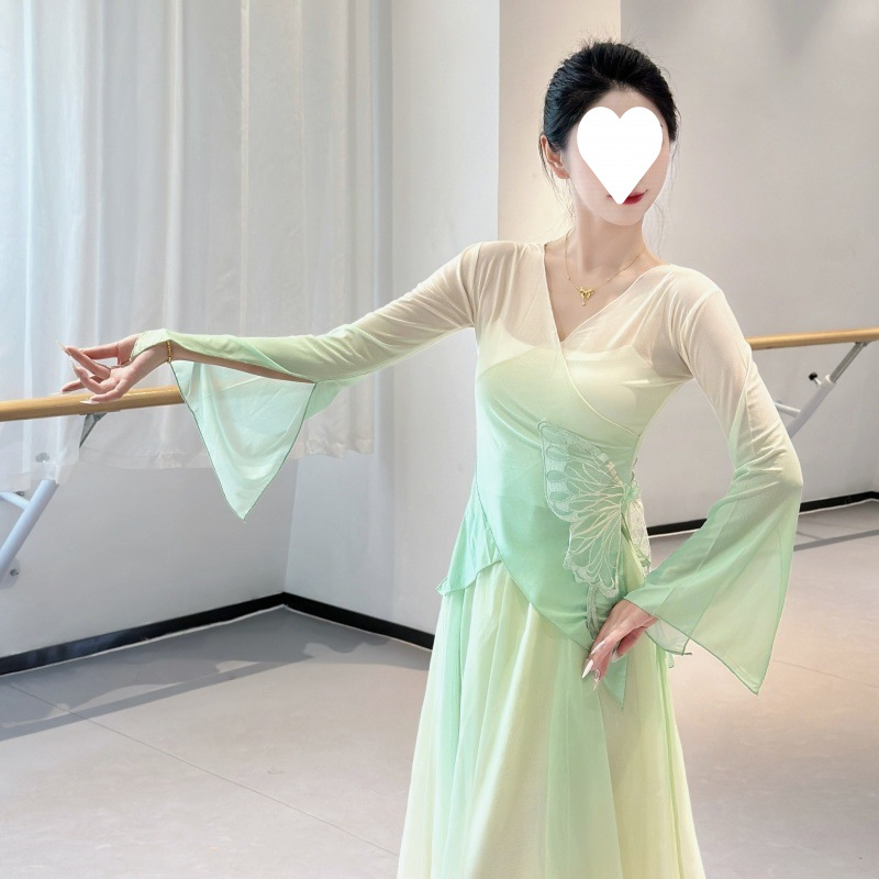 古典舞服装渐变身韵蝴蝶喇叭袖纱衣中国舞民族舞蹈演出服上衣女
