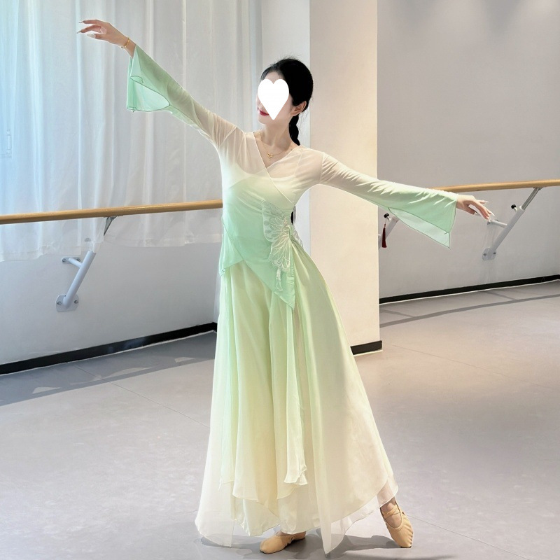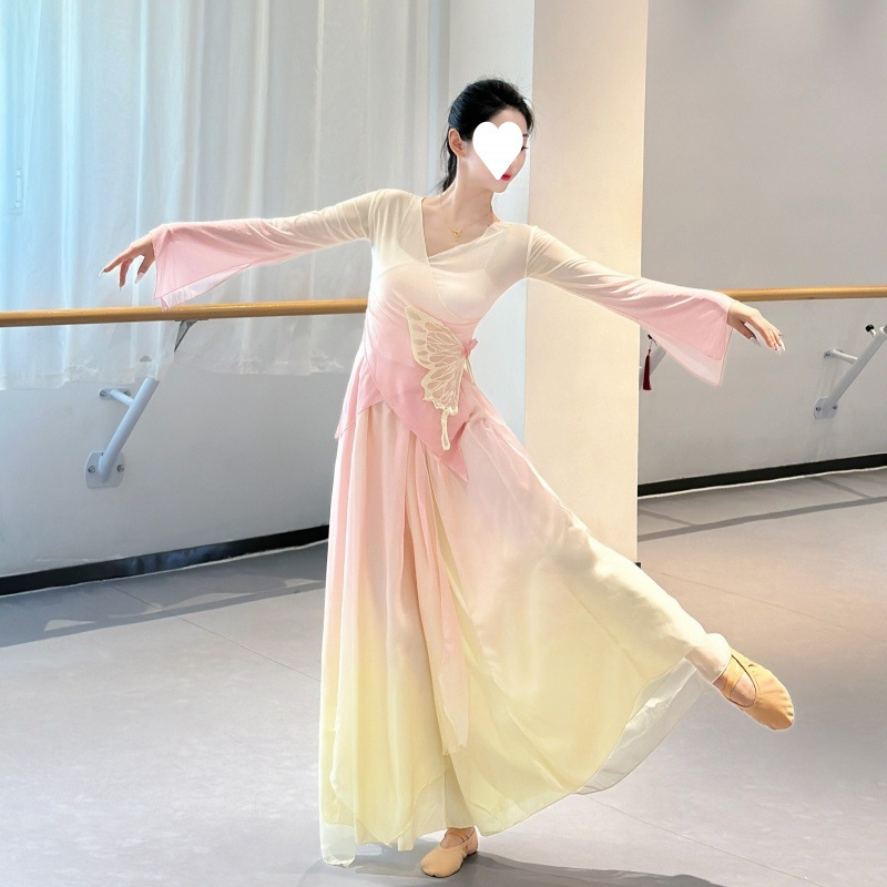 古典舞踊のグラデーション練習蝶妖精トップガーゼエレガントな中国舞踊パフォーマンス衣装スーツ