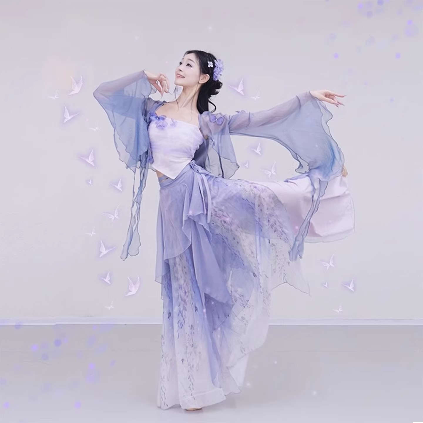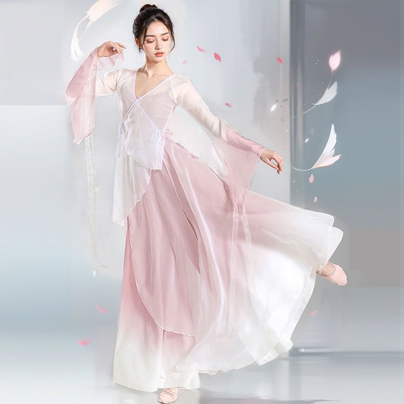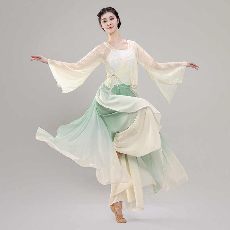 2025新款古典舞渐变仙气飘逸纱衣喇叭袖外披晕染裤裙演出服练功服