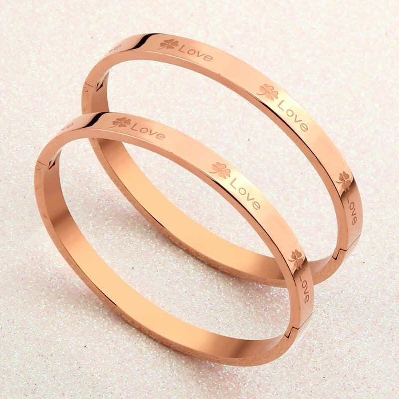 本物のクールなスタイルのゴールド 18K ローズゴールド カップル ブレスレット 四つ葉のチタン鋼ブレスレット 女性用 韓国版 シンプル 本物