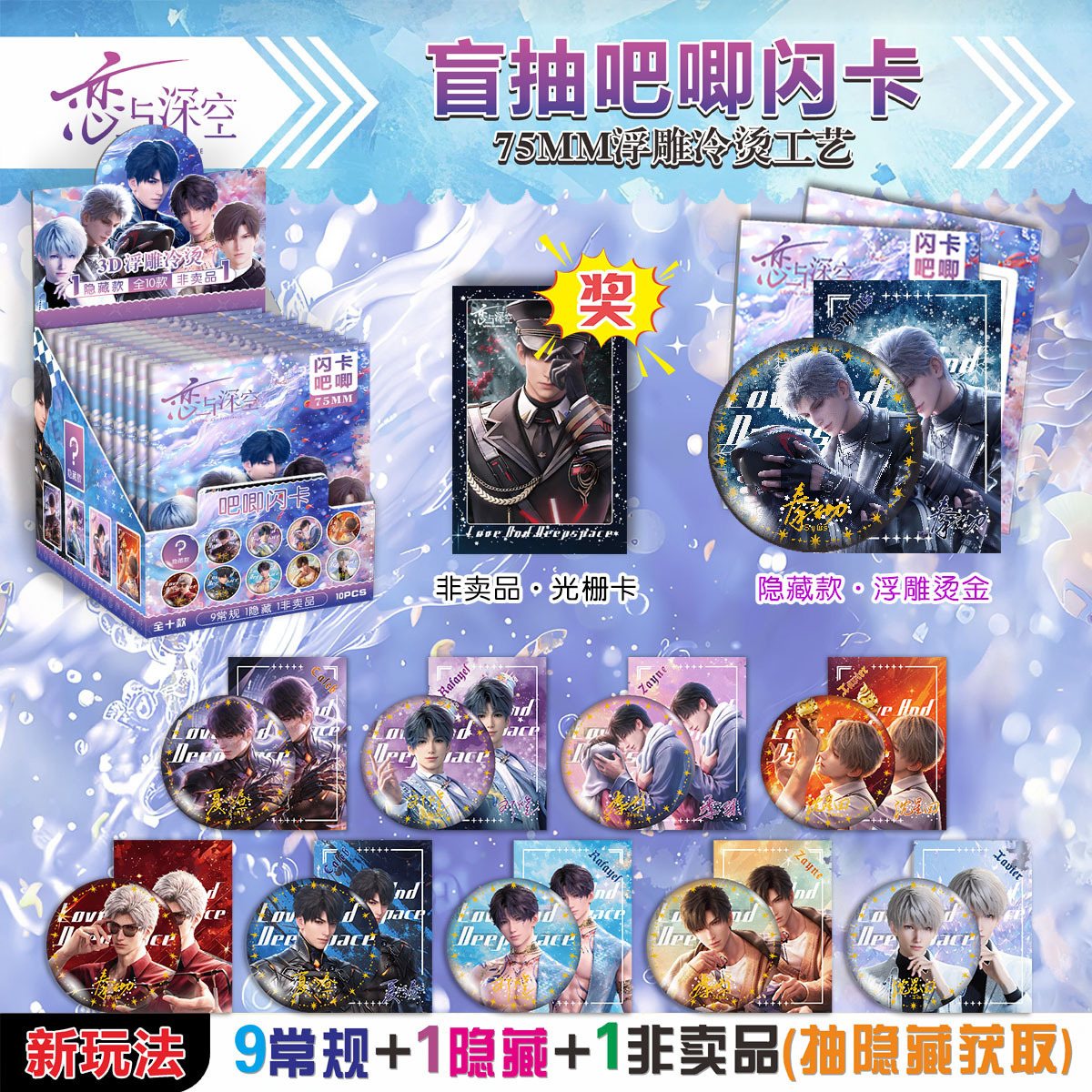 恋と深空盲箱バーフラッシュカードセットPETダブルフラッシュ浮き彫り冷熱胸章75mmバッジセット