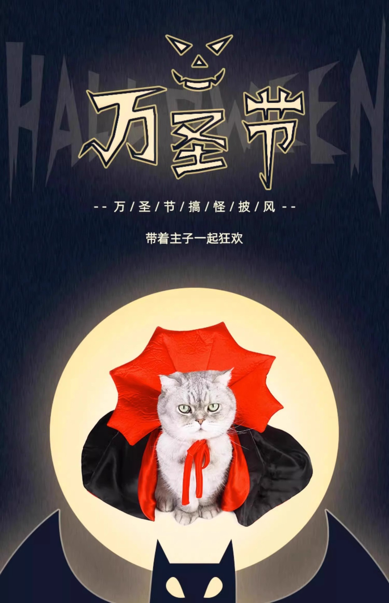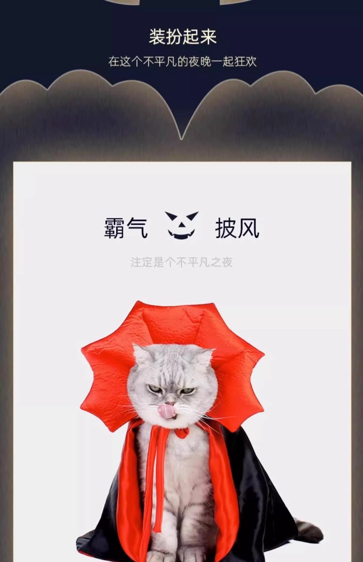 跨境宠物披风万圣节搞怪吸血鬼猫披风蝙蝠披风德古拉变身装狗披风