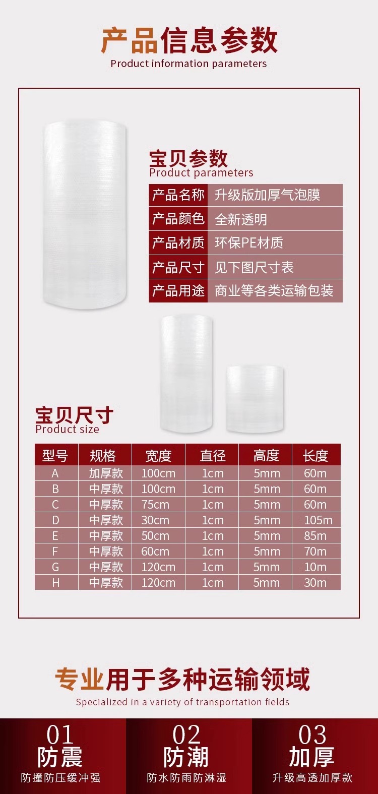 家具、電化製品、コンピュータ画面の速達包装、特殊耐衝撃性増粘緩衝バブルフィルム包装保護材