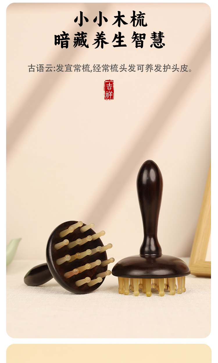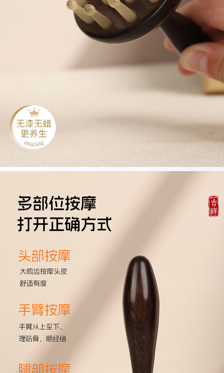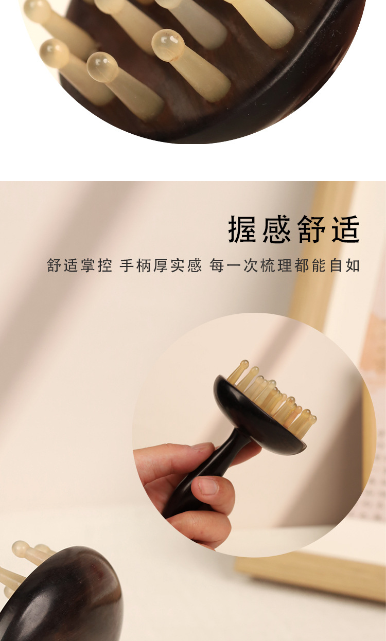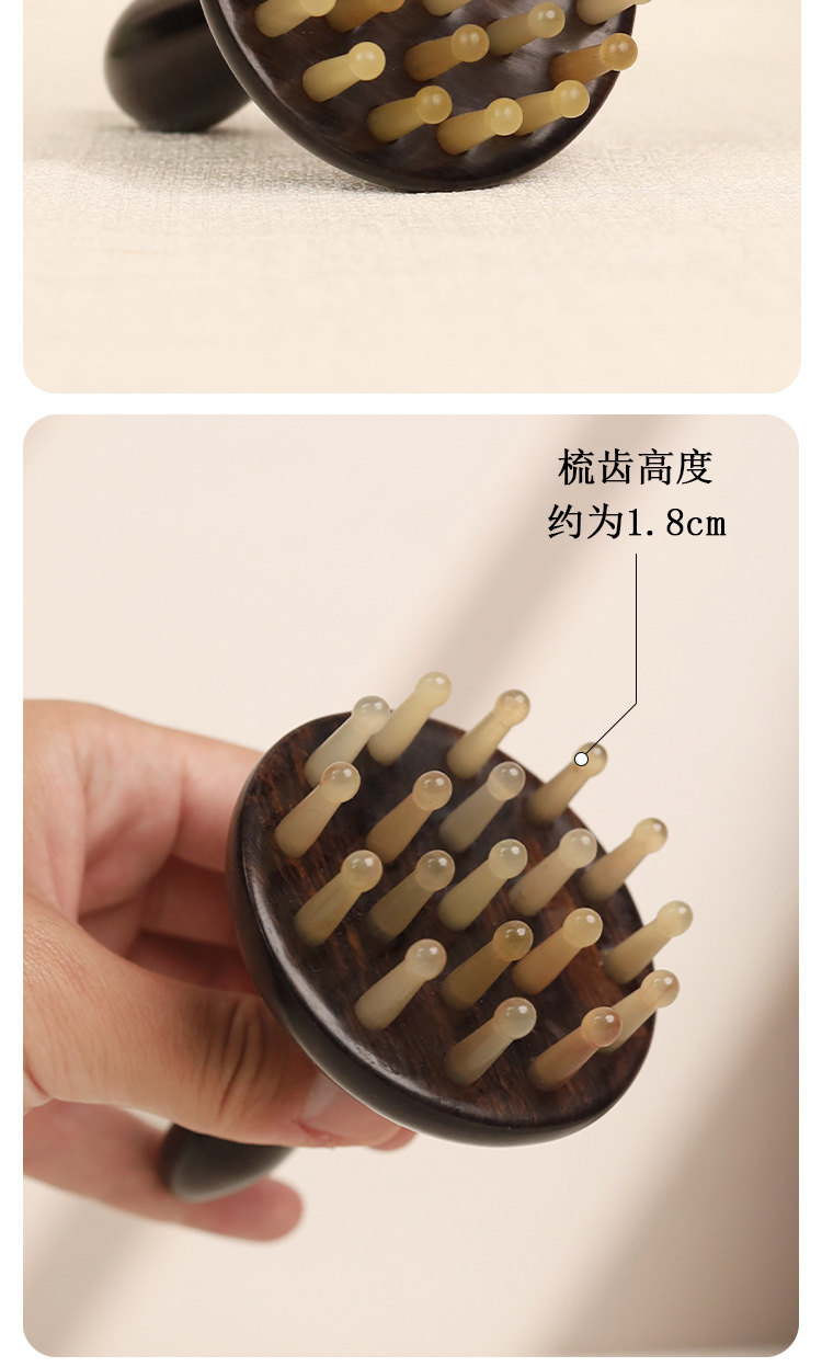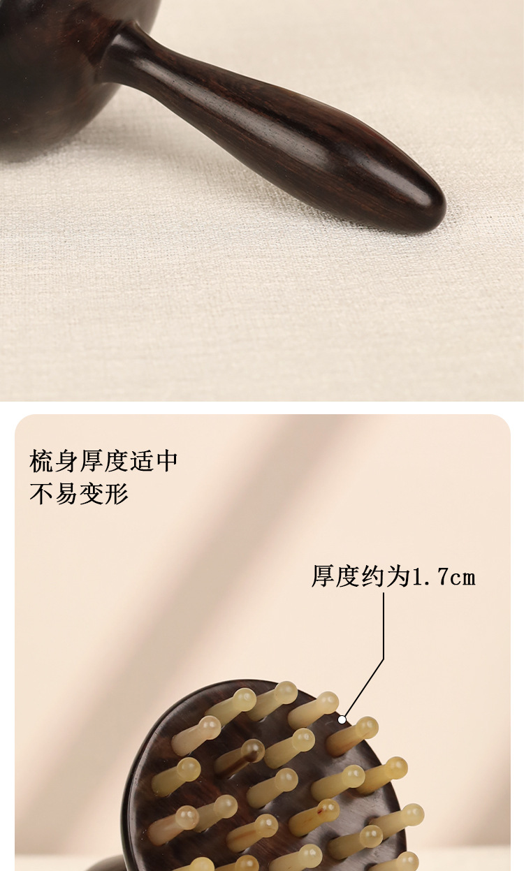 指环梳绿檀梳 羊角插齿梳黑檀紫光檀圆盘插齿梳按摩梳 多用按摩梳