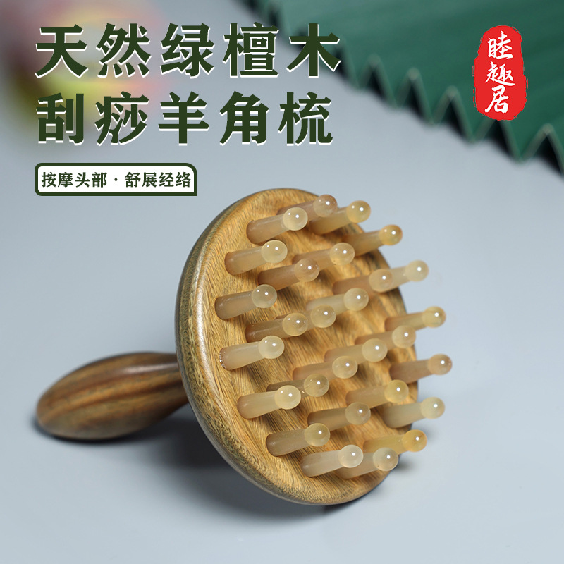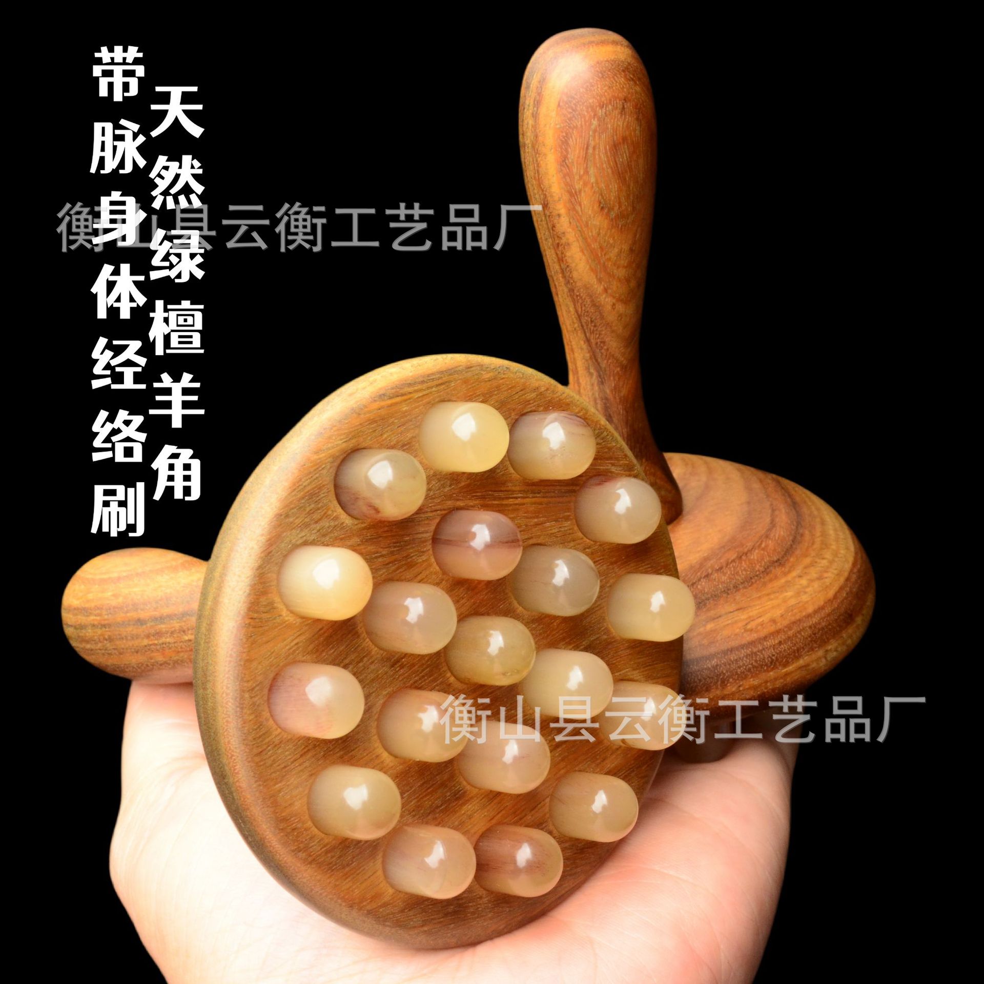 天然绿檀木羊角按摩梳女头皮经络刷全身通用揉腹仪肚子牛角按摩器