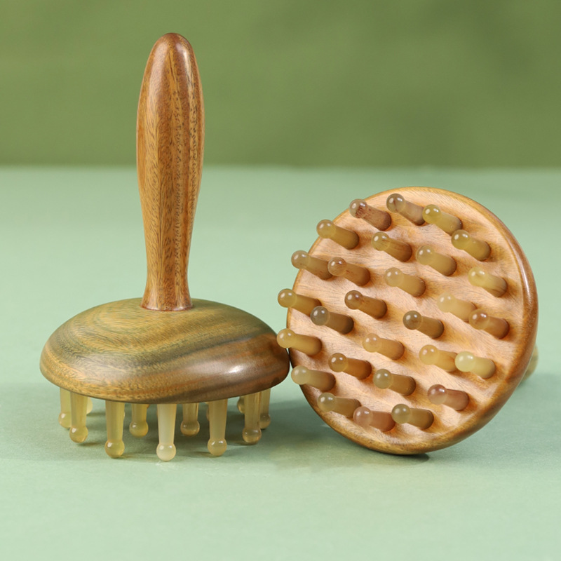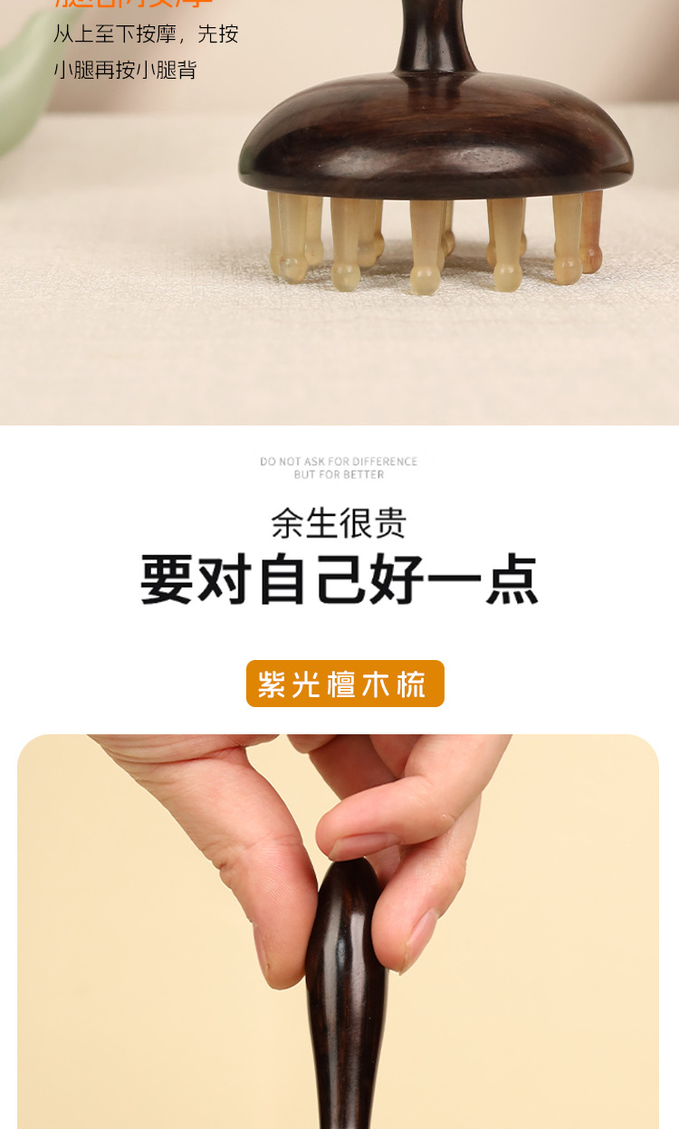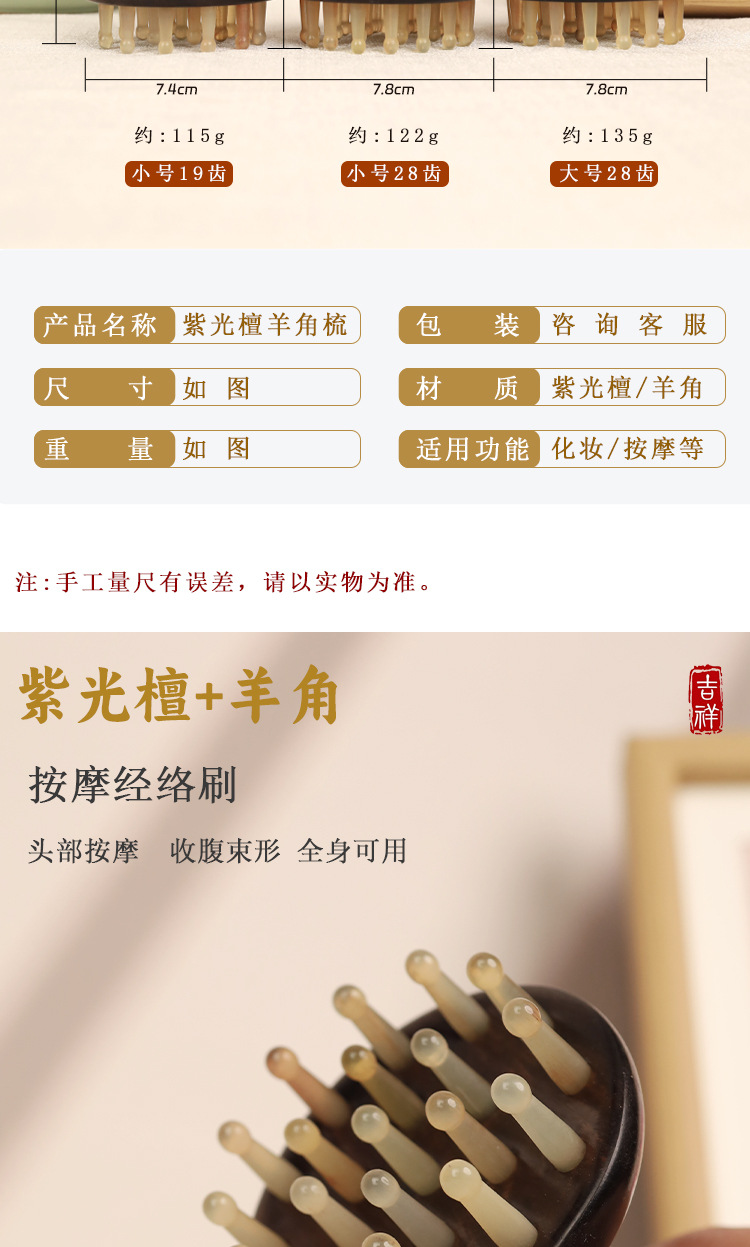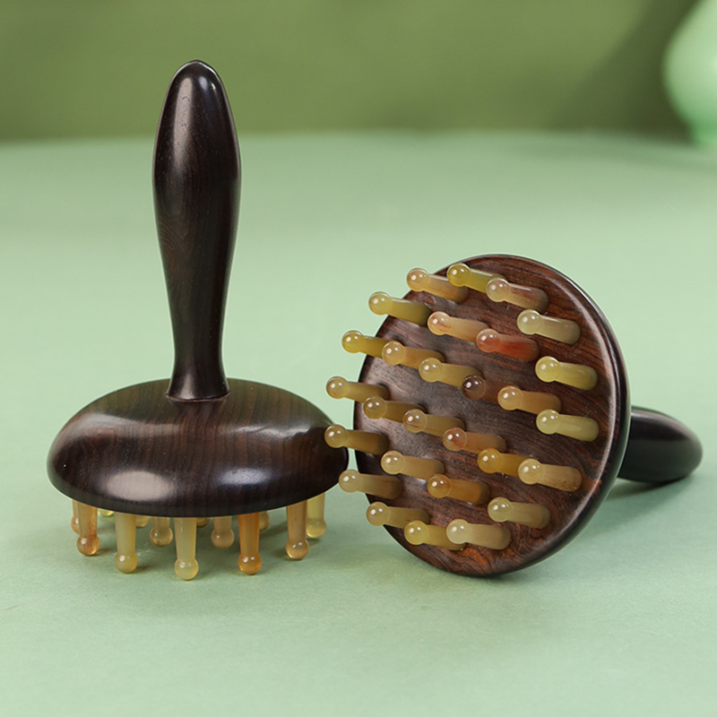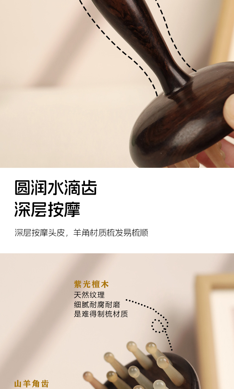 頭皮マッサージコーム、紫檀天然羊角コーム、頭部経絡コーム、洗髪ブラシ、ヘッドセラピー、刮痧、汎用指環コーム