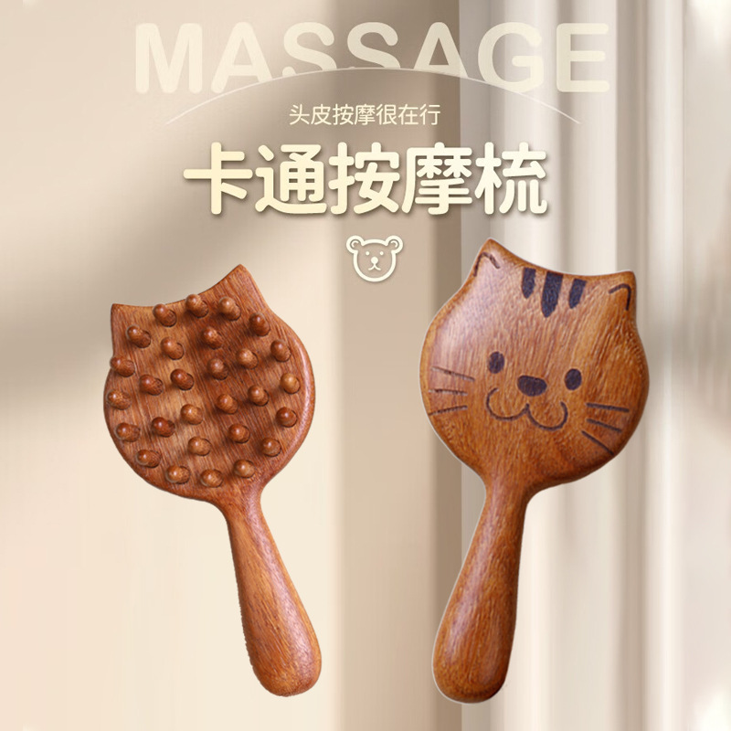 金糸檀木釘櫛マッサージ櫛創意アニメかわいい猫櫛家庭用ロングヘア櫛