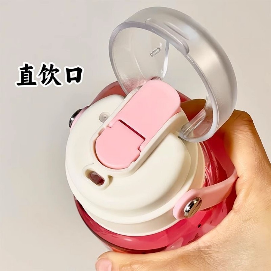 ins新款高颜值女生可爱保温杯316不锈钢便携双饮卡通吸管儿童水杯