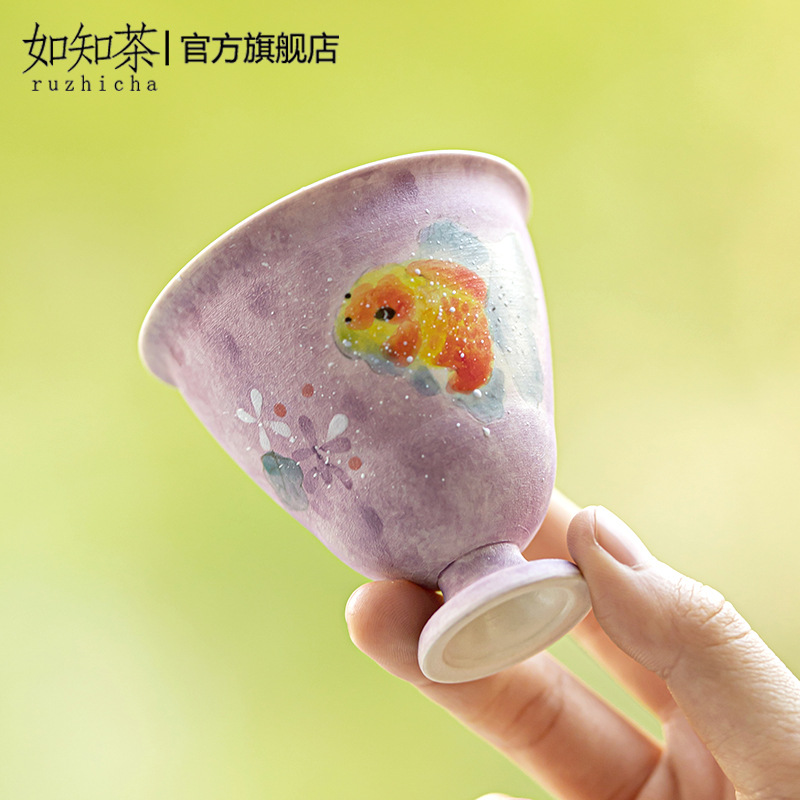 紫鳞福鱼手绘初晴杯陶瓷主人杯下午茶品茗杯送礼高足茶杯精致