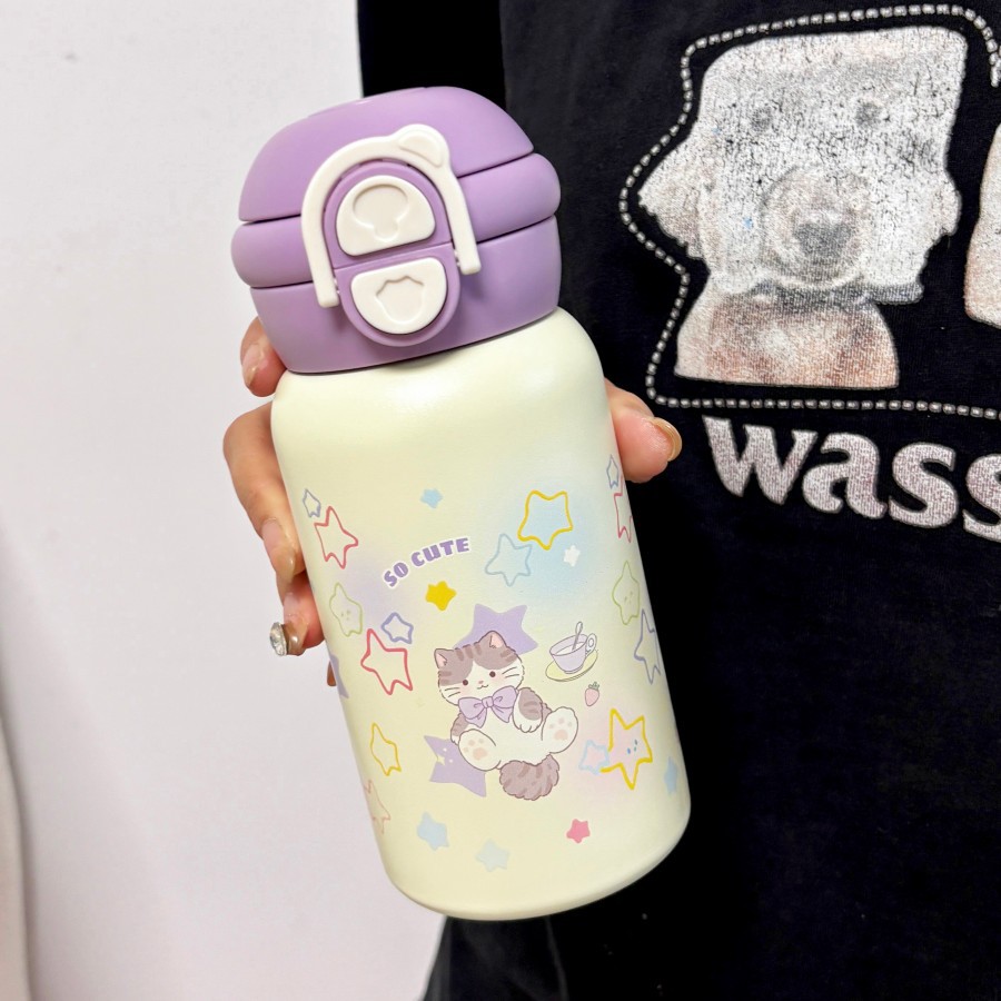 星星小猫双饮保温杯高颜值吸管杯子新款316不锈钢水杯便携学生ins