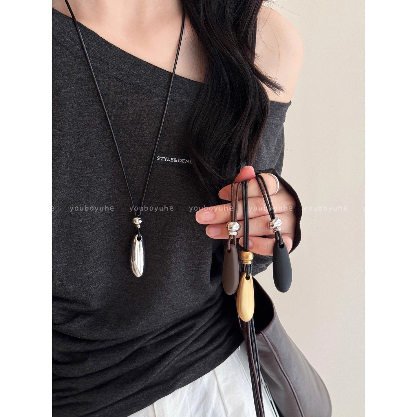 极简主义~水滴吊坠项链女2025新款高级感长款毛衣链小众装饰配饰