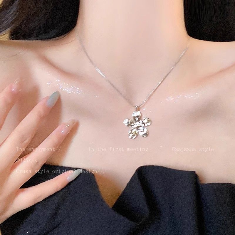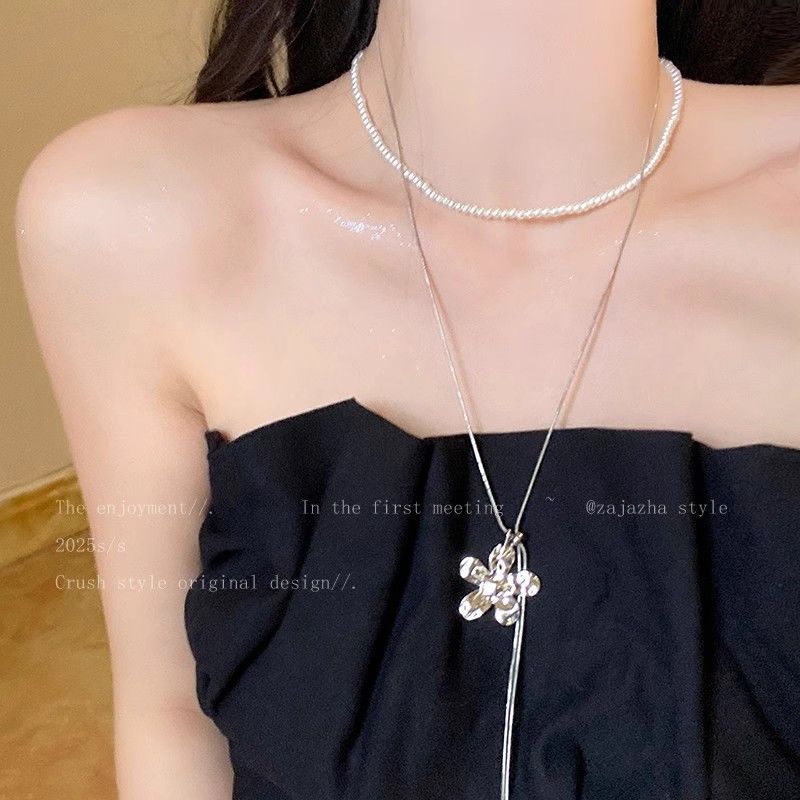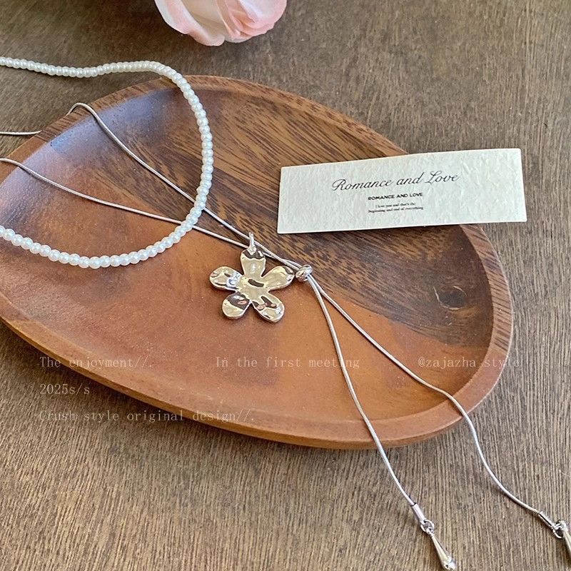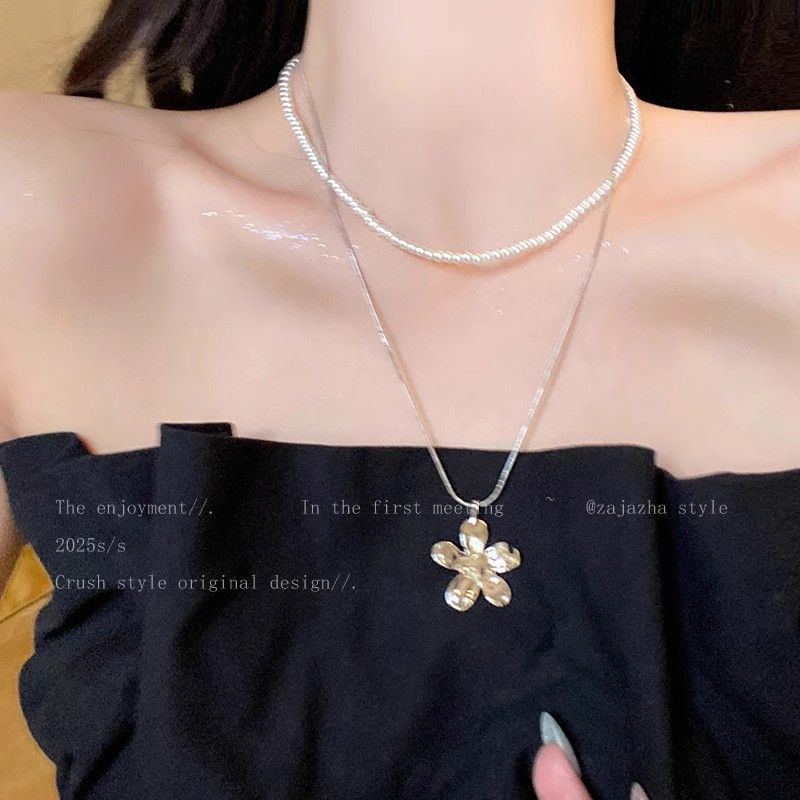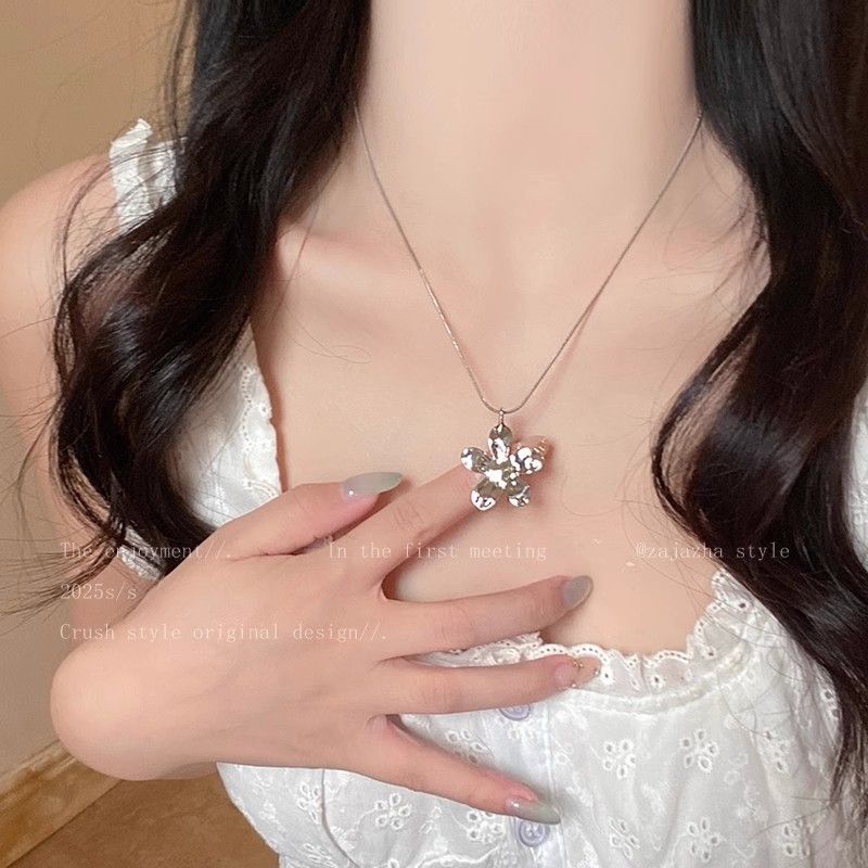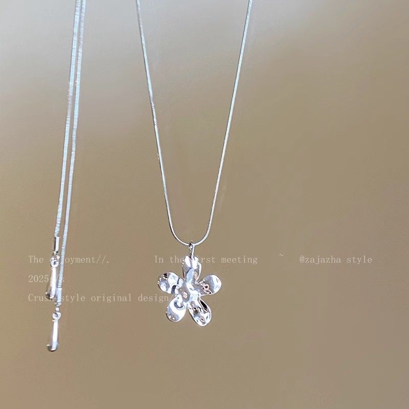 夏の新作〜韓国シルバーフラワーネックレスレディースニッチデザイン絶妙な鎖骨チェーンファッションスタッキングアクセサリー