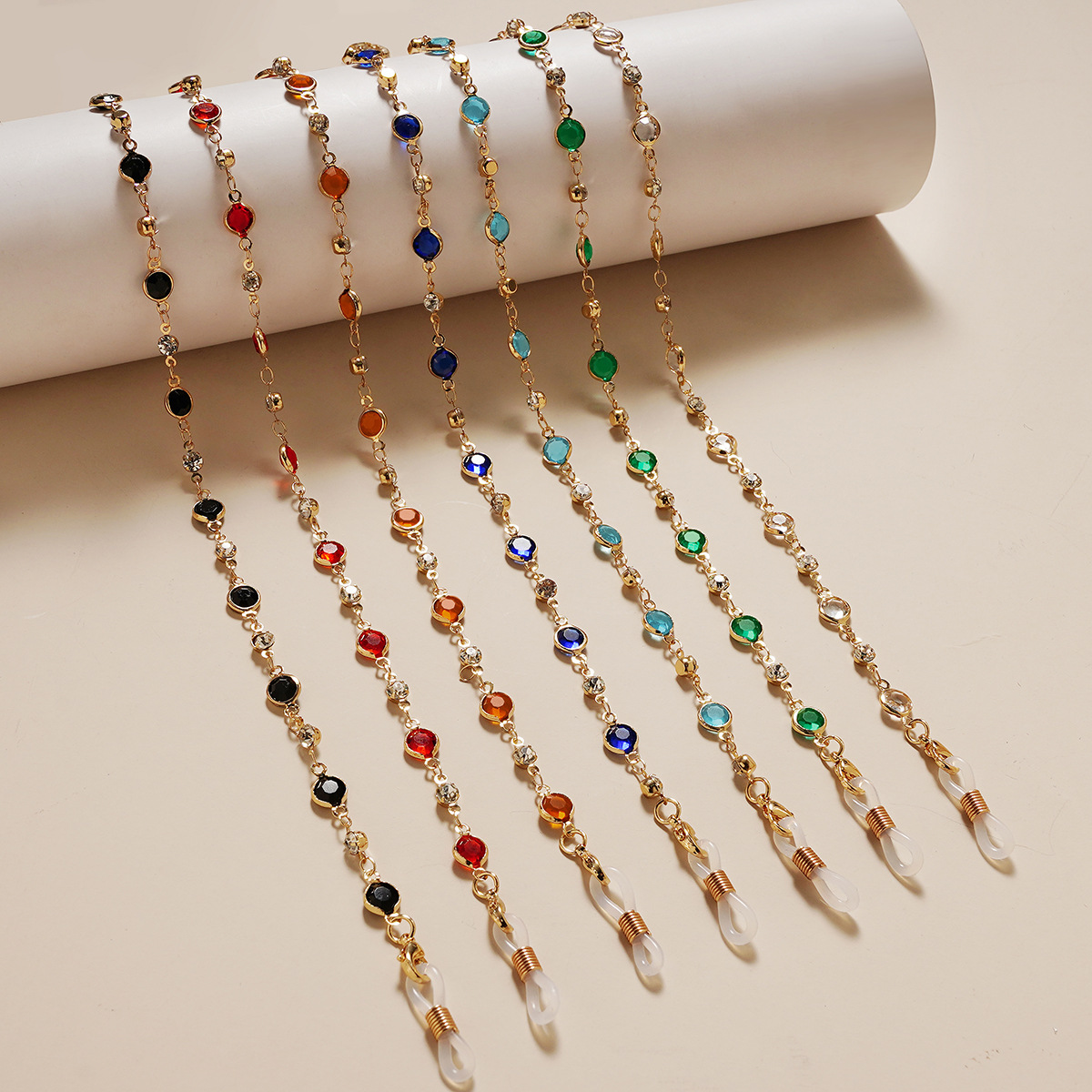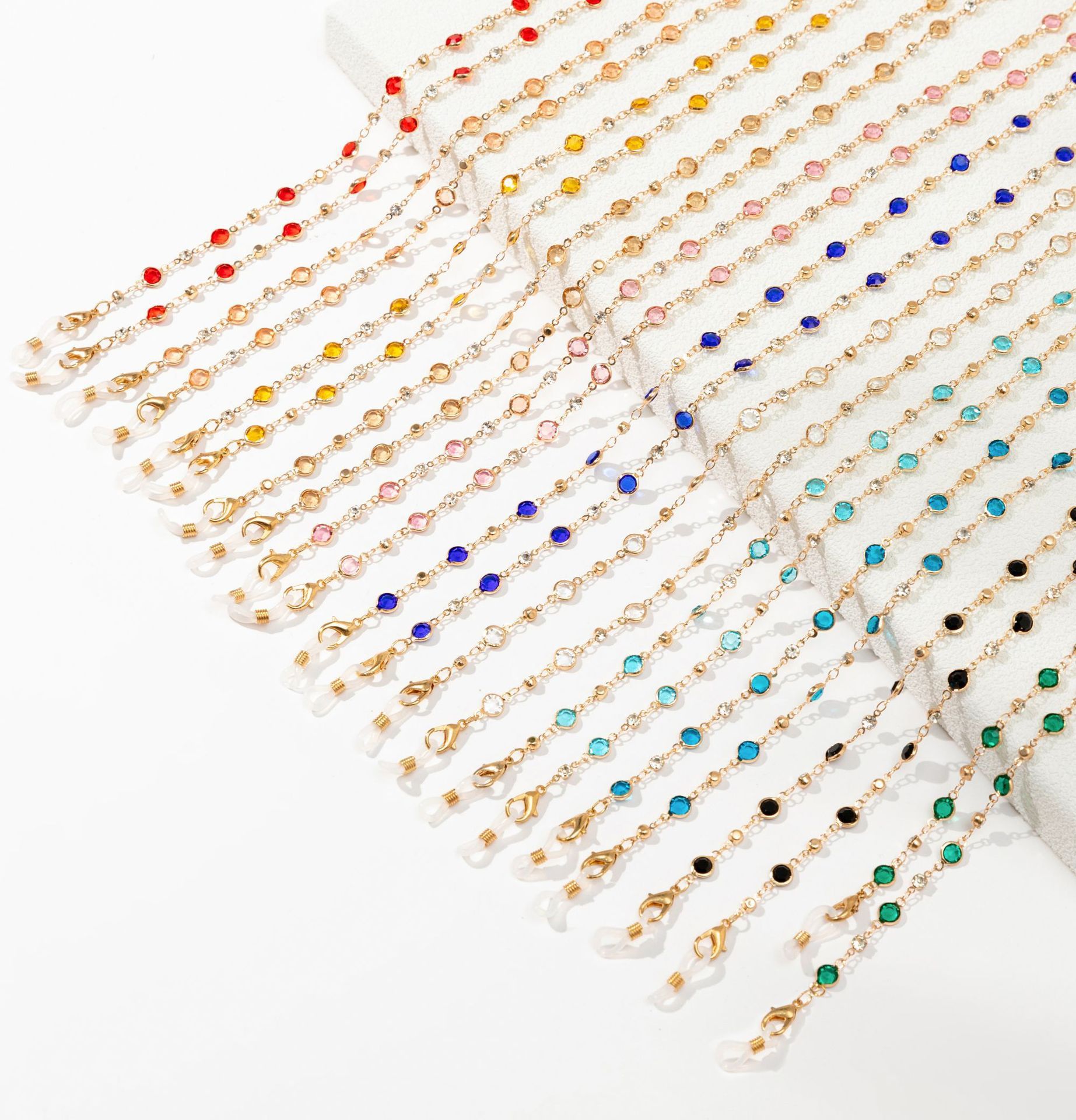 メガネチェーン、メガネロープ、ストラップ、クロスボーダーAmazonメタルジュエリーアクセサリー、カラフルなクリスタル滑り止めマスクチェーン