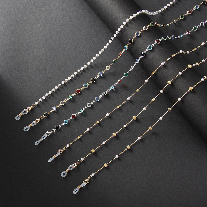 メガネチェーン高级感ストラップクロスボーダーアマゾンメタルアクセサリーアクセサリーカラークリスタルアンチスキッドメガネのストラップ