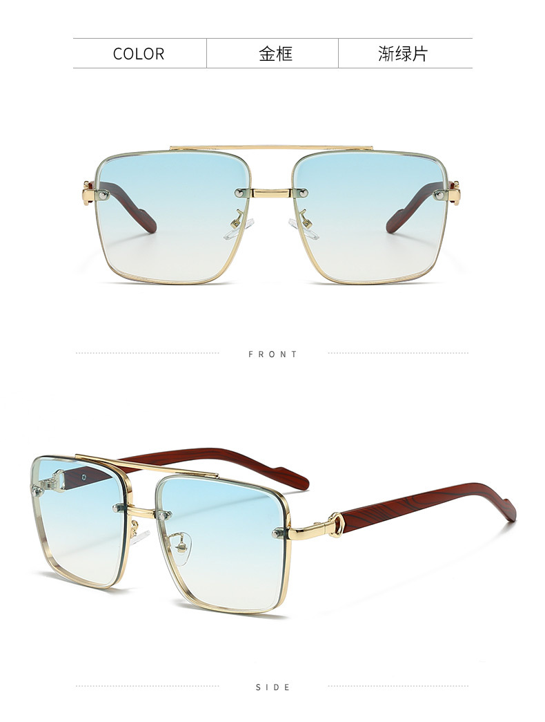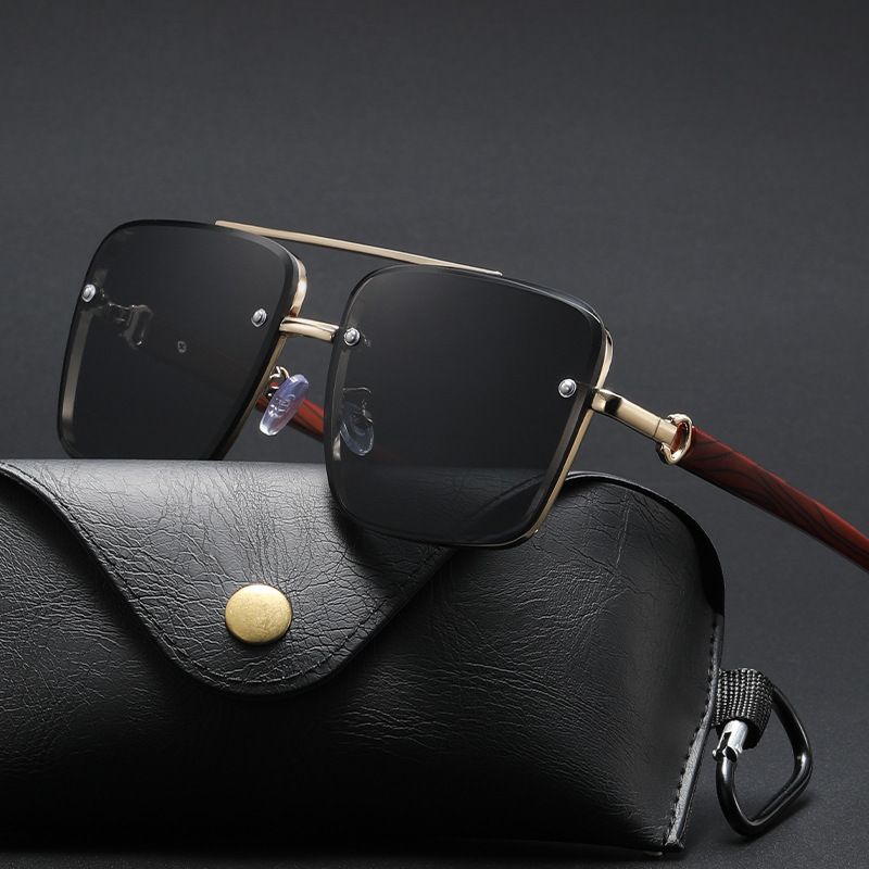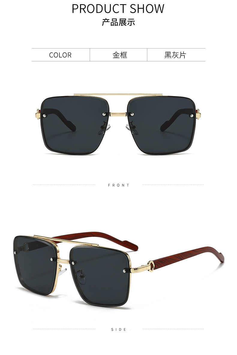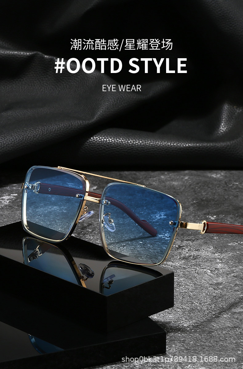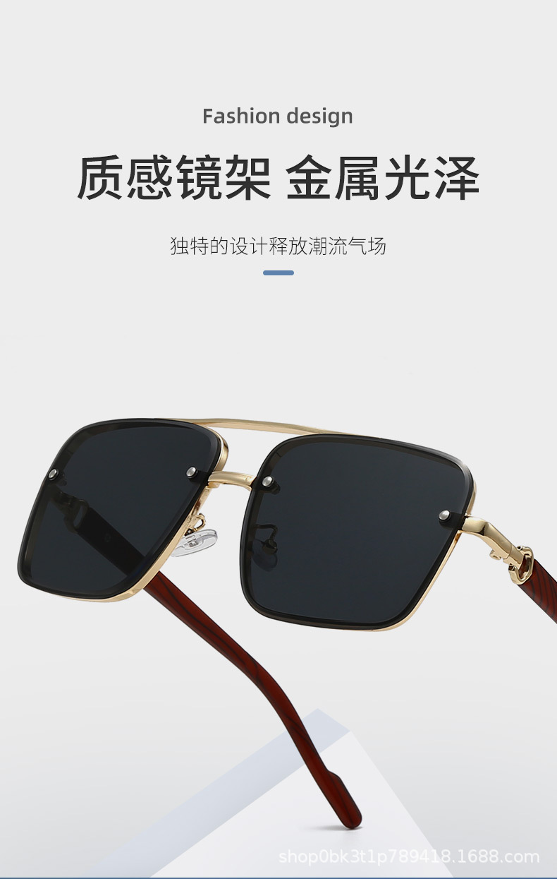 メンズの新しいダブルビーム模造木目調レッグファッションサングラスクラシック多用途カジュアルトレンド抗UVサングラス