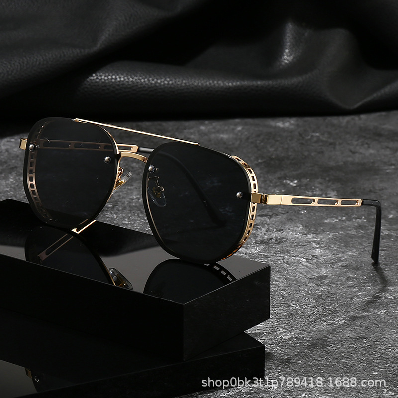 新款金属双梁方框太阳镜跨境欧美户外复古墨镜高级感工厂现货眼镜