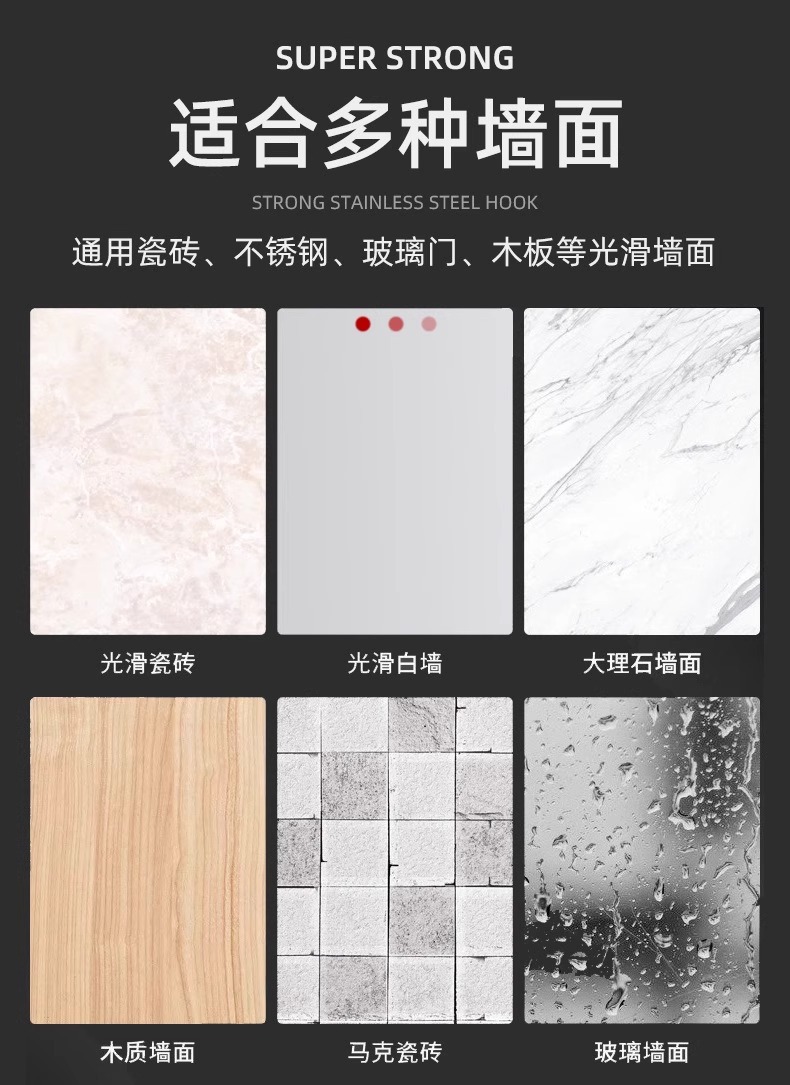 挂钩强力粘胶免打孔厨房浴室门后贴墙壁上无痕粘钩承重不锈钢钩子