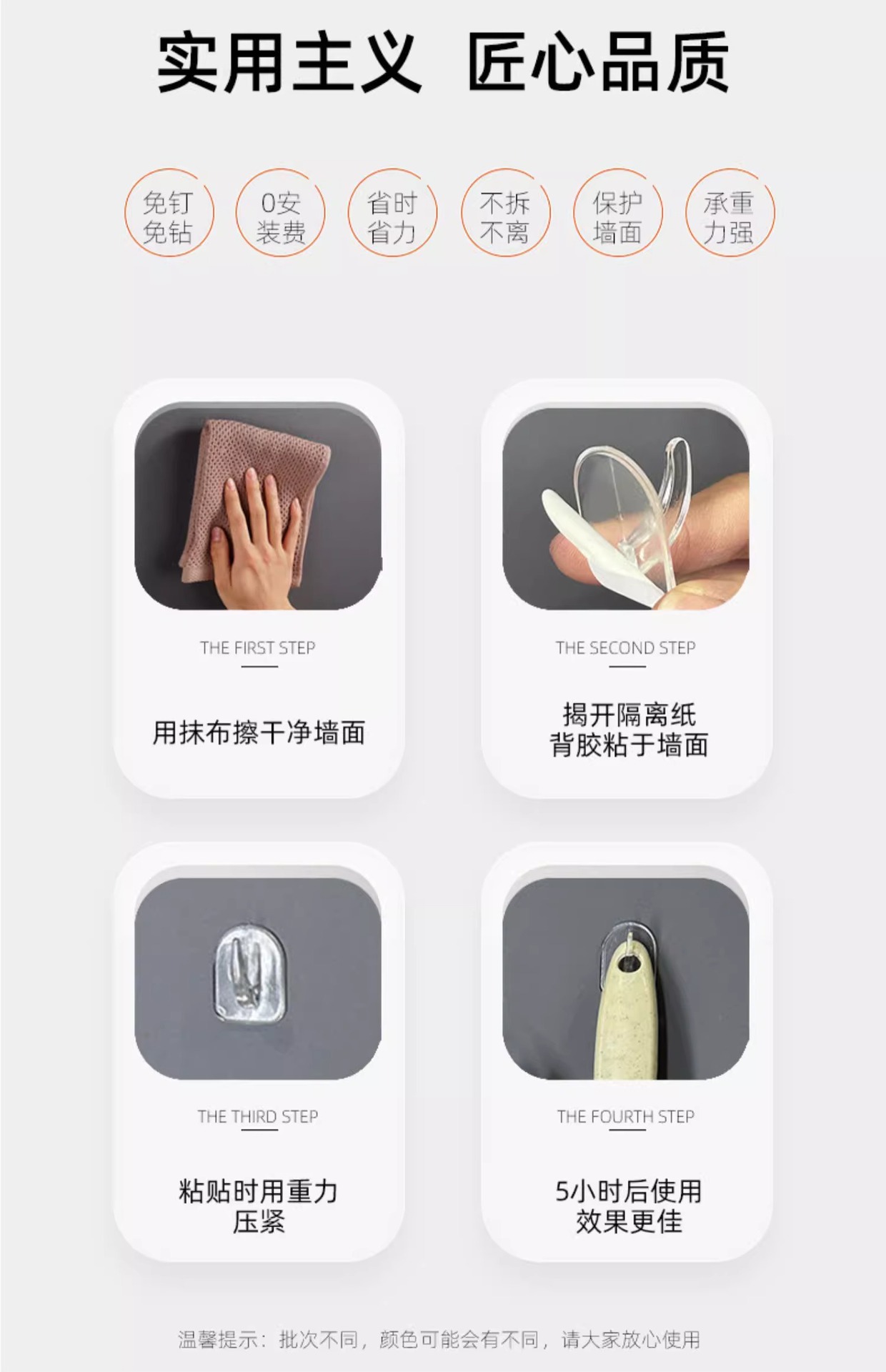 免打孔挂钩壁挂专用pvc墙上无痕厨房卫生间浴室通用透明粘钩