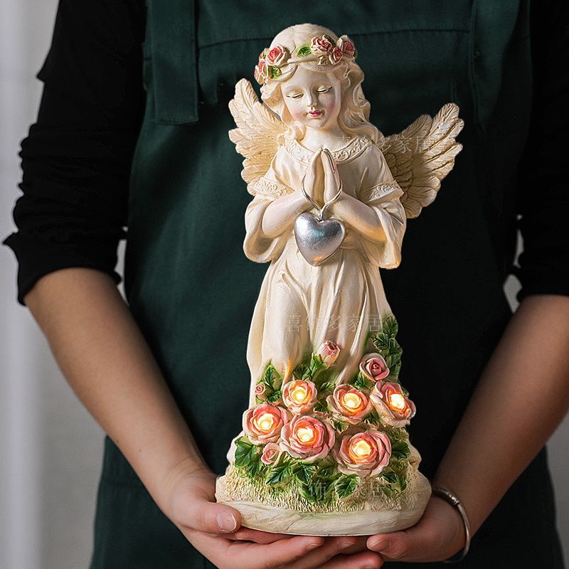 北欧風太陽エネルギー感応灯祈祷天使像樹脂置物客間玄関雰囲気灯現代装飾