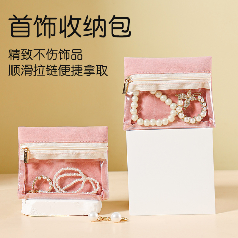 迷你首饰收纳包耳钉戒指手镯饰品整理绒布收纳袋透明拉链零钱包