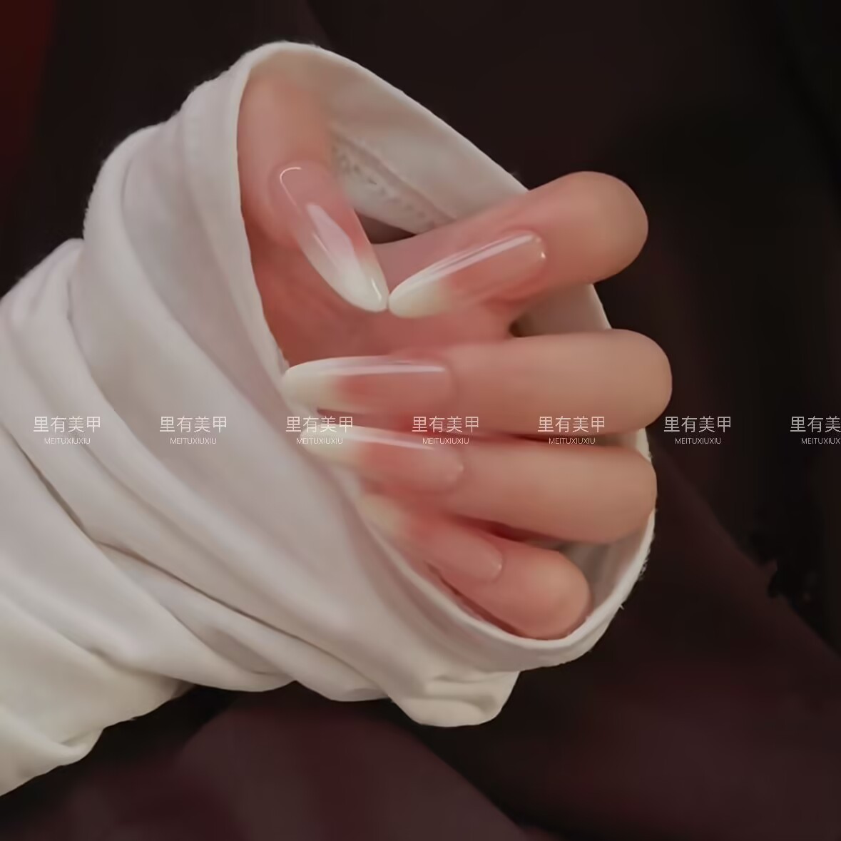 简约穿戴甲里有纯手工穿戴甲美甲批发403腮红奶白渐变简约穿戴甲