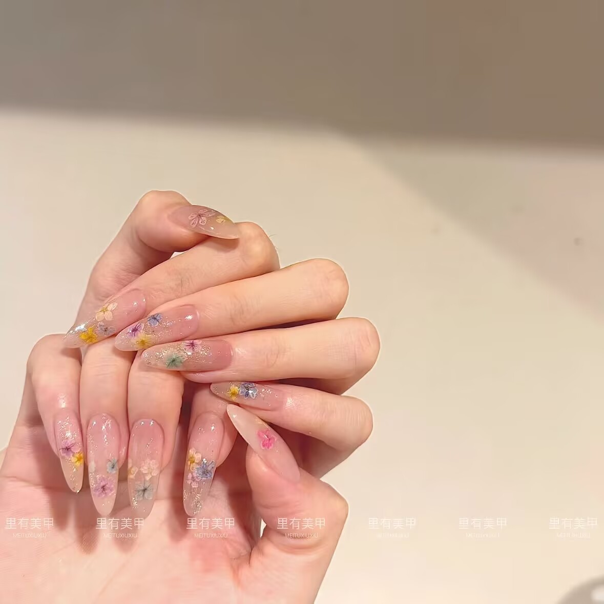 里有Liu 纯手工穿戴甲美甲批发359莫奈花园温柔甜美穿戴甲