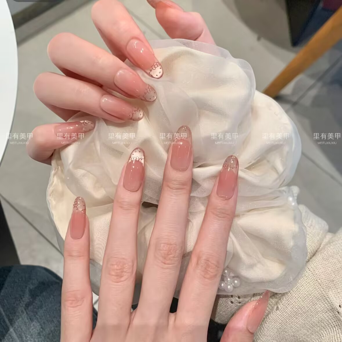 里有纯手工穿戴甲美甲批发364奶棕腮咖裸色细钻气质高级感美甲