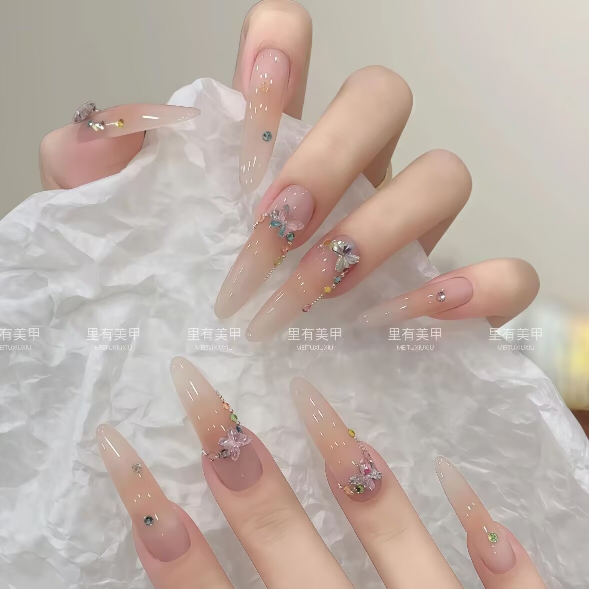 卸売348新しいスタイルの純粋な手作りのウェアラブルマニキュア、蝶祭りのフラッシュキャットアイマニキュア