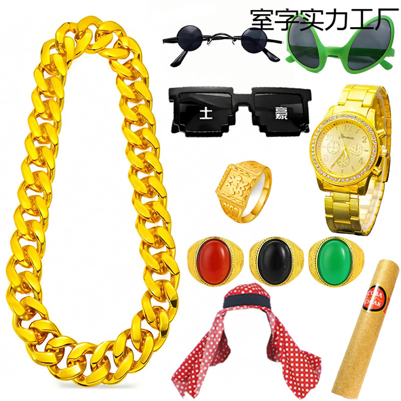 インターネット有名人のゴールドチェーン、大きなDouyin誇張された超厚いプラスチックネックレス、ライブパフォーマンスの小道具、ヒップホップ社会のリッチな人々