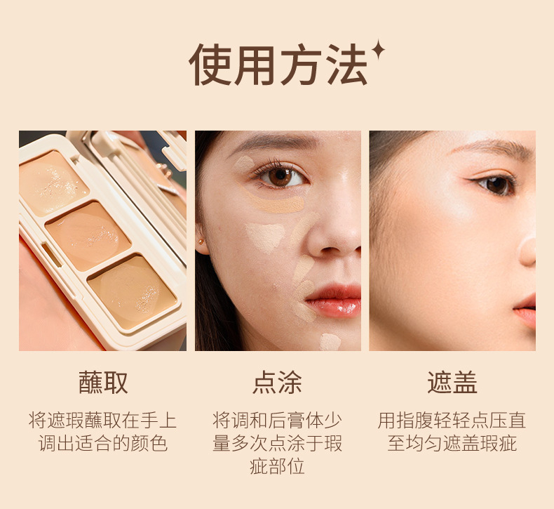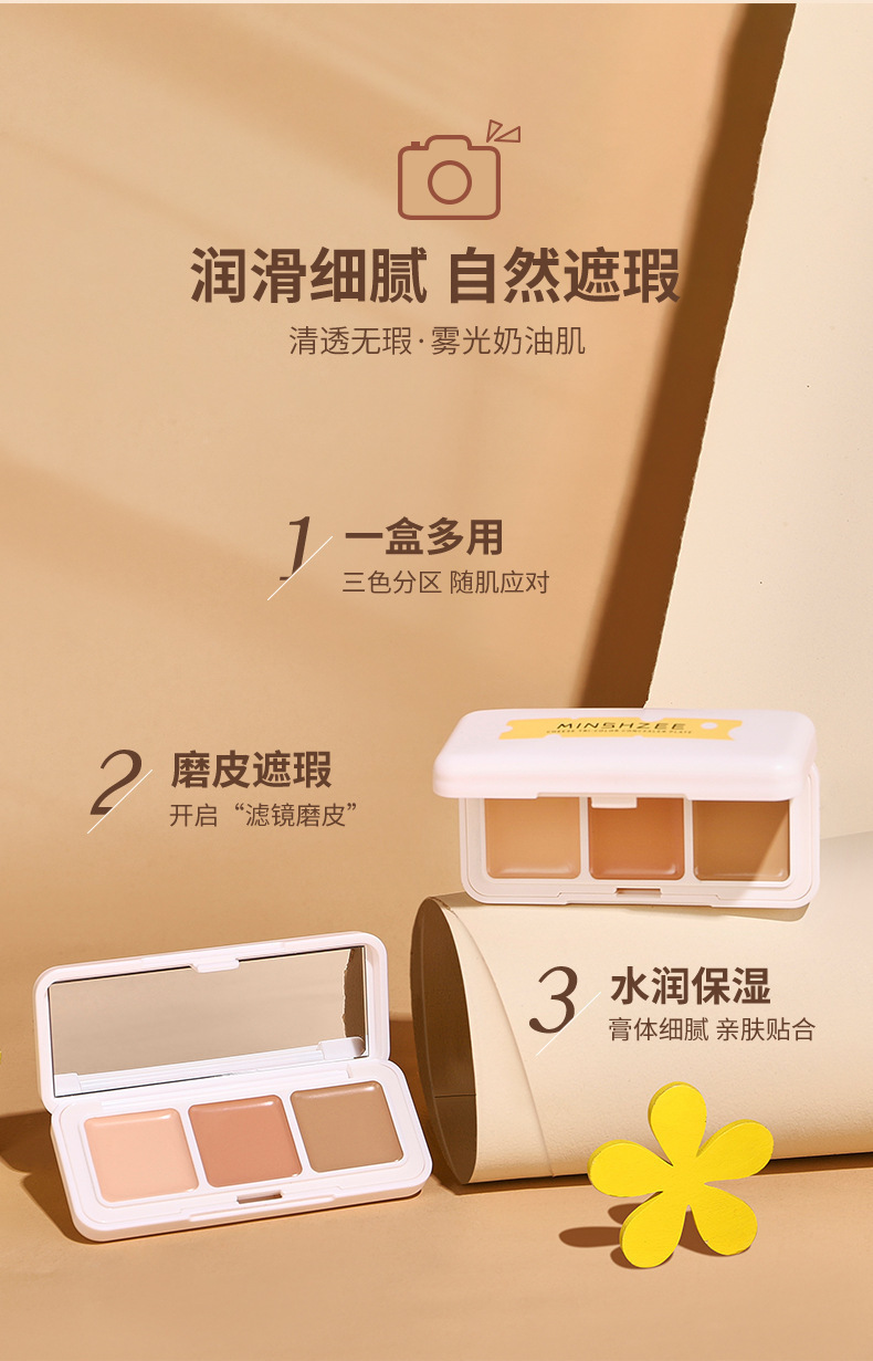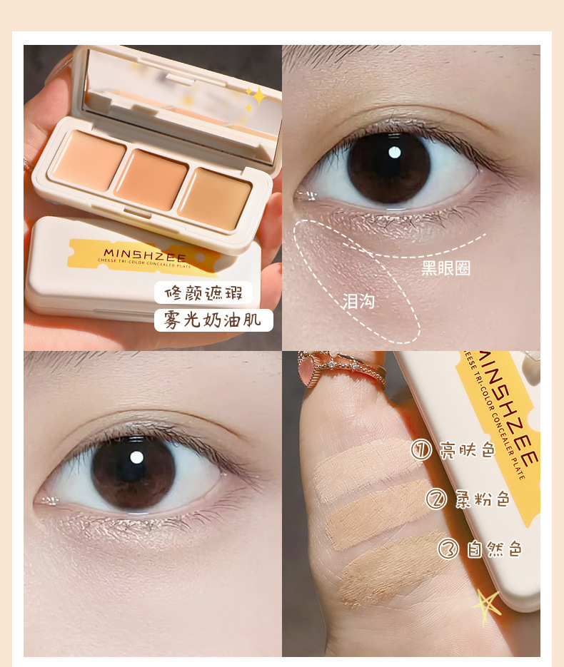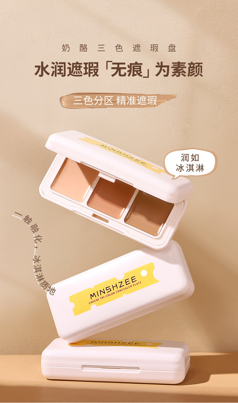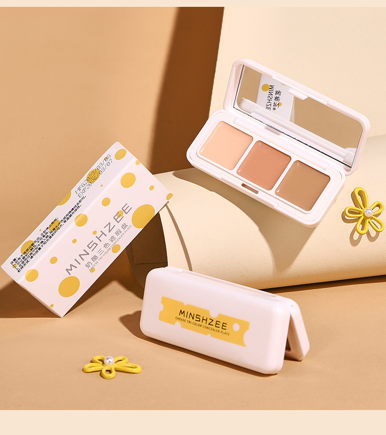 Ming Xizhi チーズ 3 色コンシーラー シミ、顔のニキビ跡、ニキビ肌、乾燥肌、脂性肌をカバーするコンシーラー