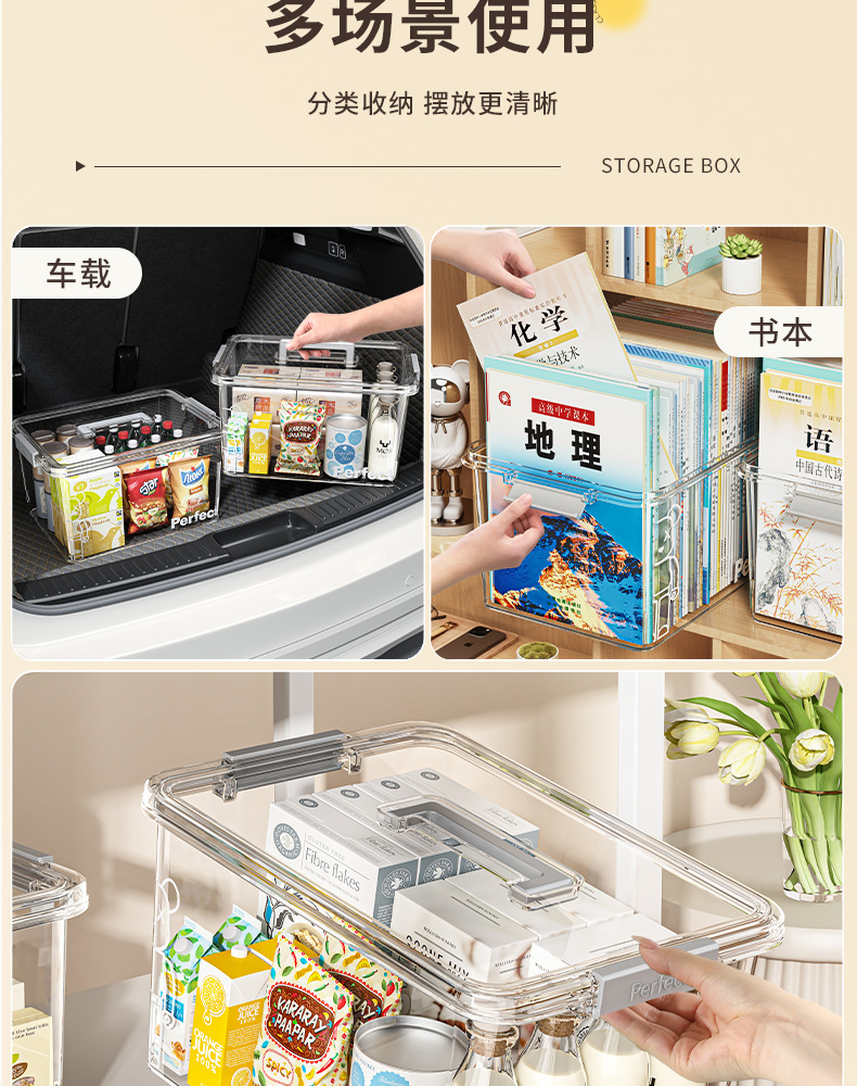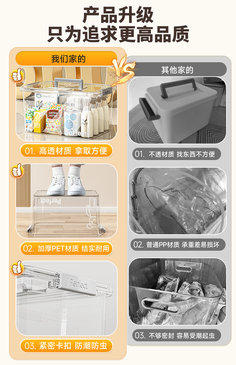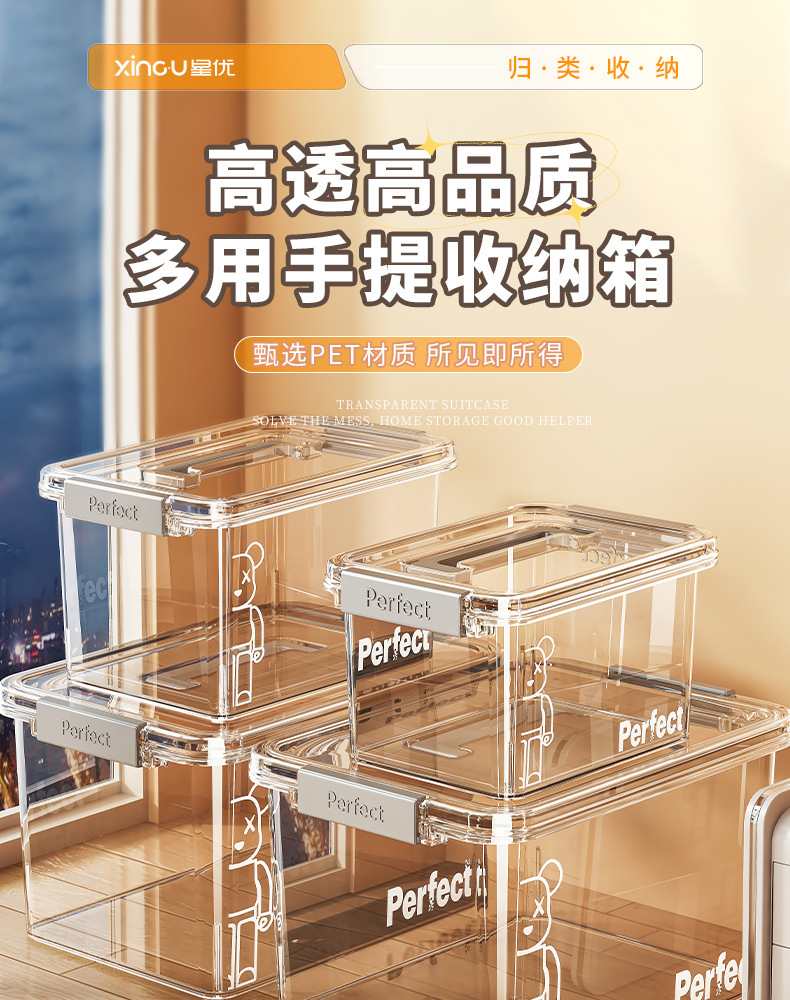 家庭用の厚みのある衣類、おもちゃ、スナック、本用のポータブル透明収納ボックス、大容量の整理ボックス、プラスチック収納ボックス