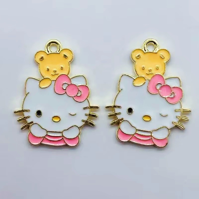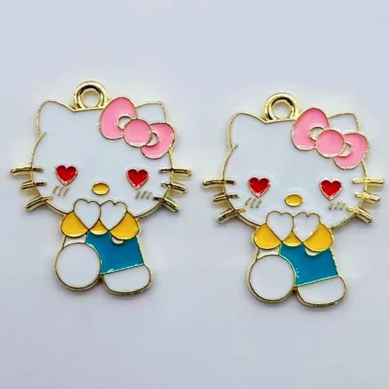 ラブ KT ハローキティ合金ジュエリーアクセサリーヘアロープ帽子キーホルダーペンダントペンダント diy 手作り材料