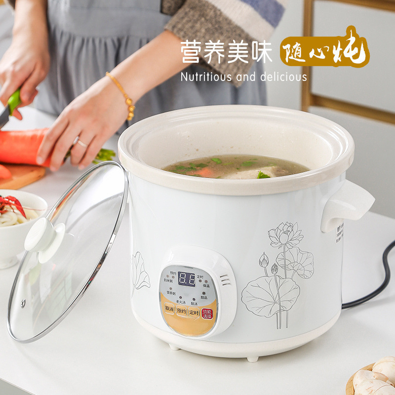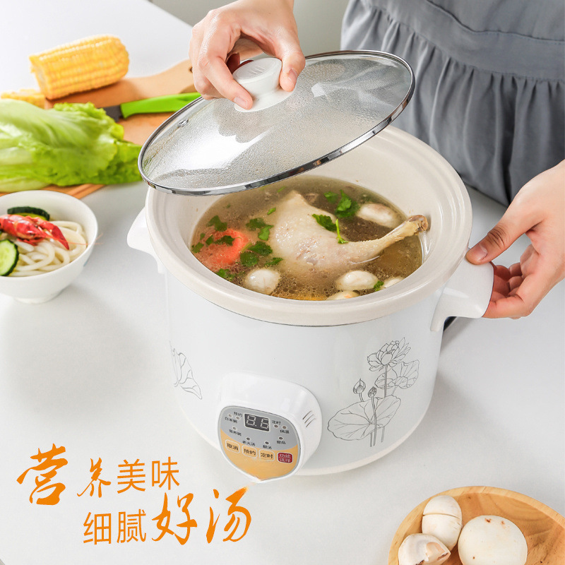 全自動小型シチューポット、電気キャセロール、ベビーヘルスセラミックBBお粥調理器具、スープポット、家庭用電気シチューポット
