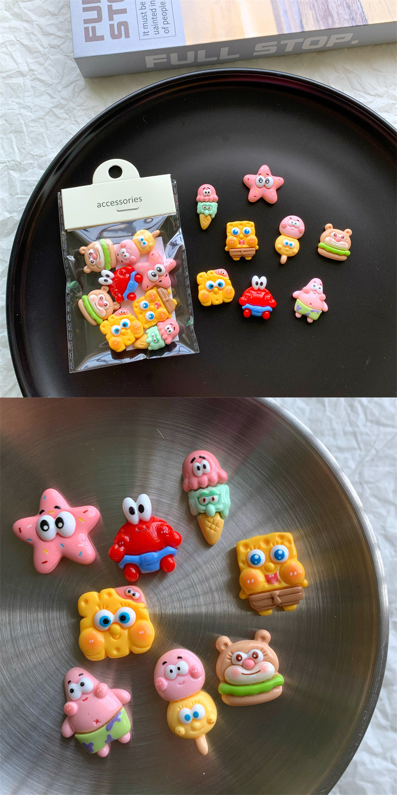スポンジボブクリーム接着剤アクセサリーファンシームレスウォーターカップステッカー車のステッカー冷蔵庫ステッカーホール靴花 diy 素材